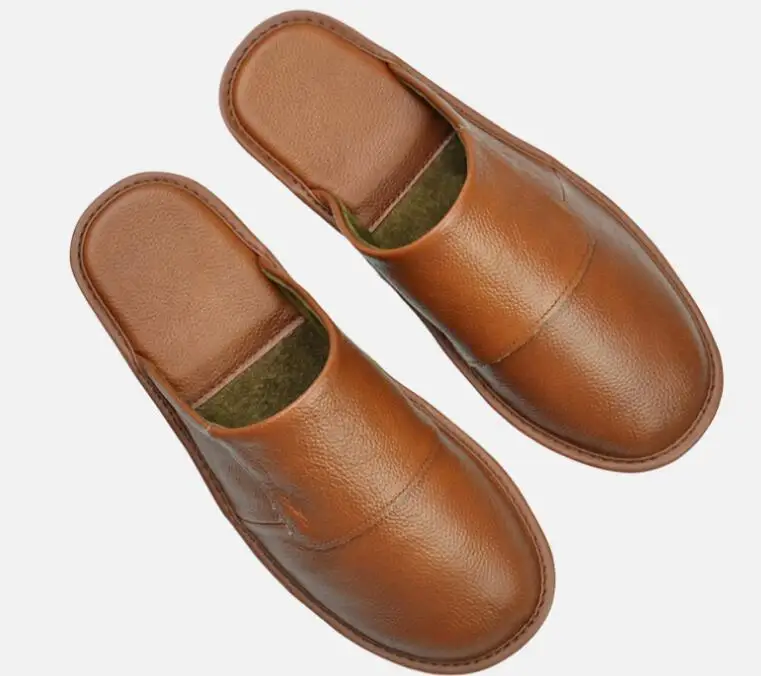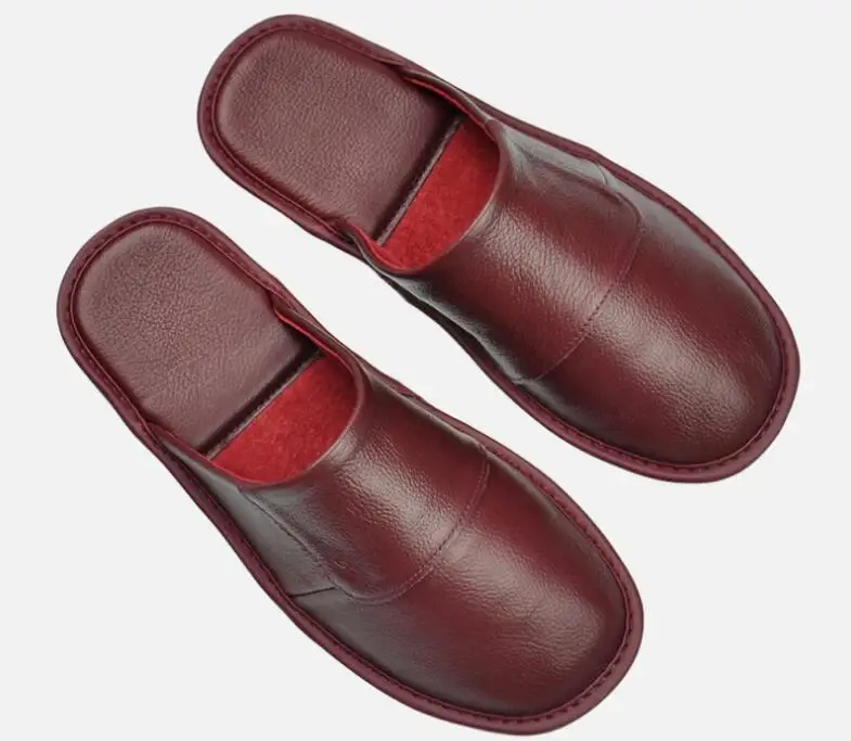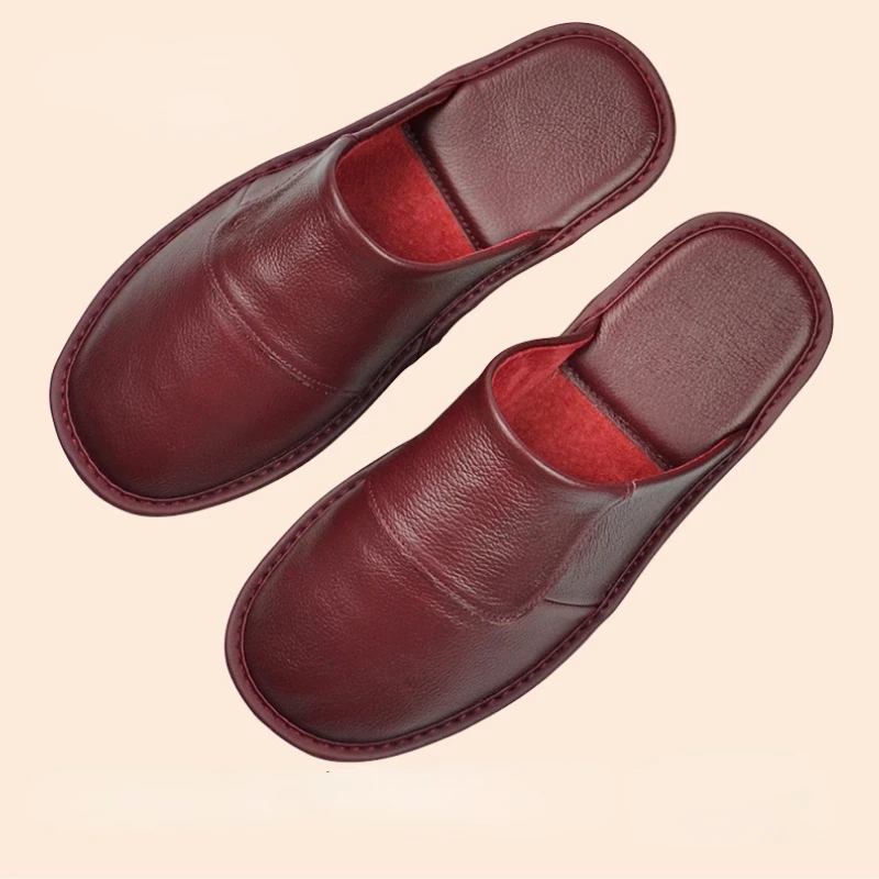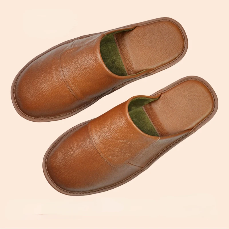 XIHAHA Leder Hausschuhe Herbst/Winter – Pantoufle d'intérieur unisexe aus echtem Rindsleder, bequem & schlicht, bis Größe 46