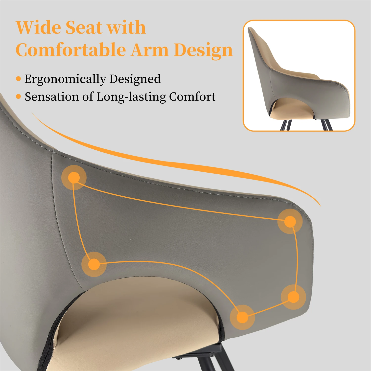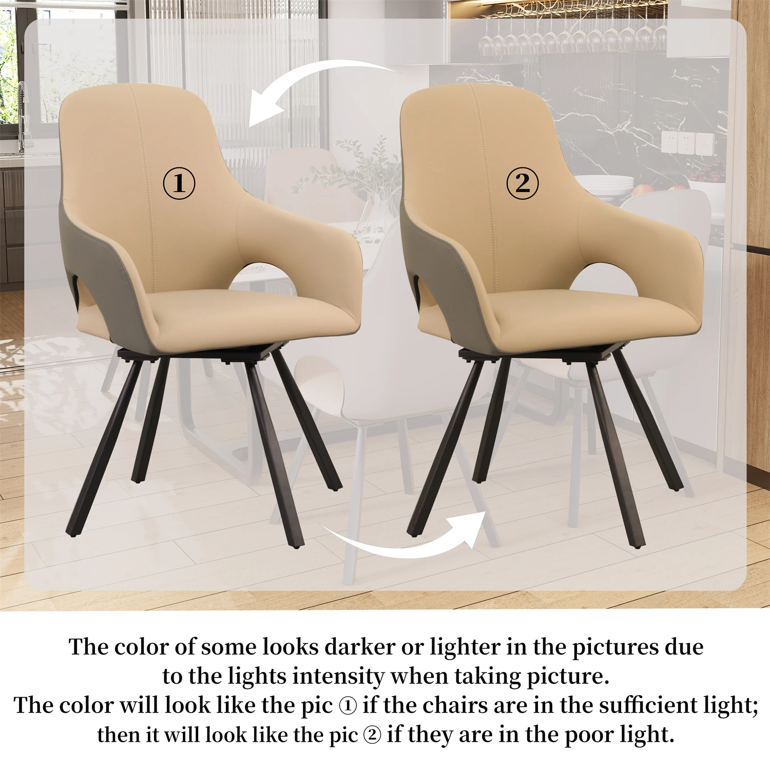2er Set Drehbare Esszimmerstühle mit Armlehnen – Moderne Polsterstühle aus Mikrofaser-Kunstleder mit hoher Rückenlehne für Küche & Wohnzimmer