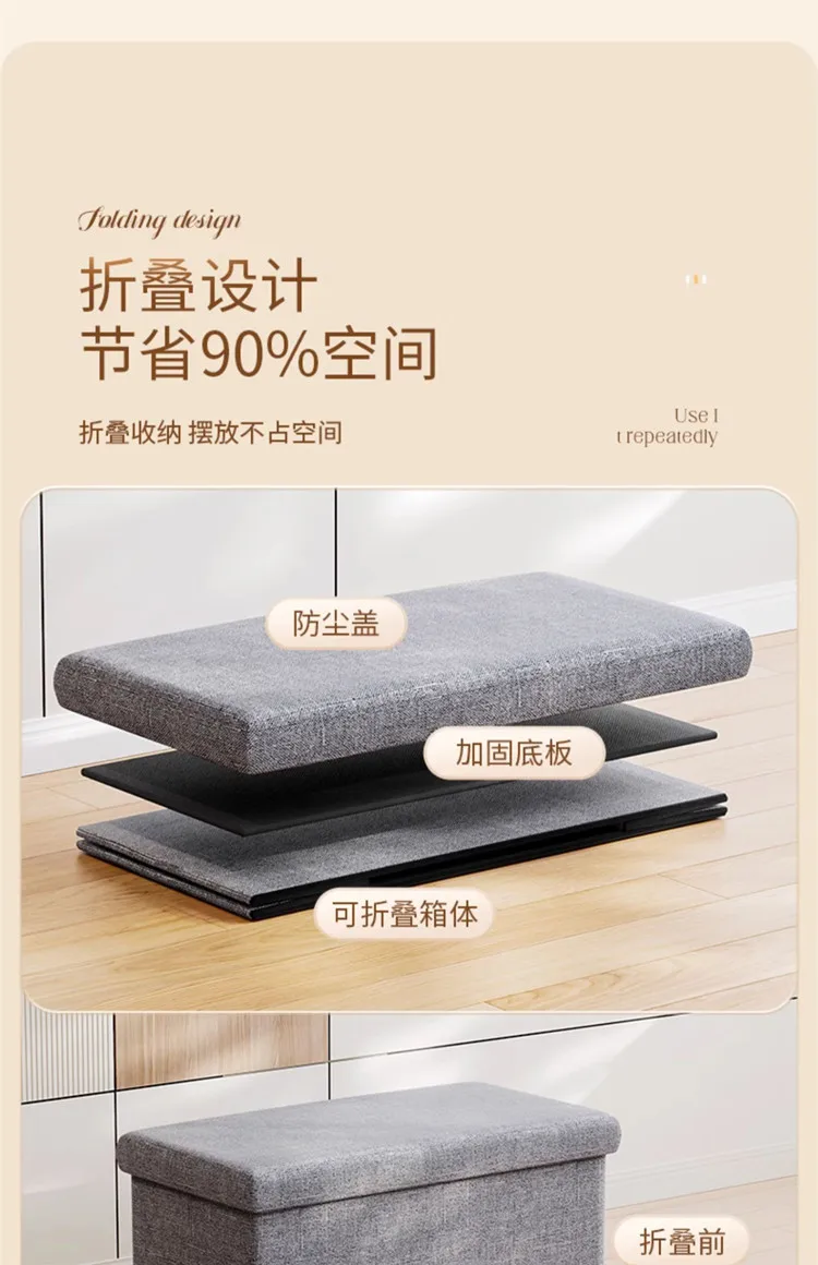 Ein besonderes Highlight ist die klappbare Konstruktion. Bei Nichtgebrauch lässt sich der Sitzhocker flach zusammenfalten und platzsparend verstauen – ideal für kleinere Wohnungen, Gästezimmer oder flexible Wohnkonzepte. Der Aufbau ist selbsterklärend und in wenigen Handgriffen erledigt.