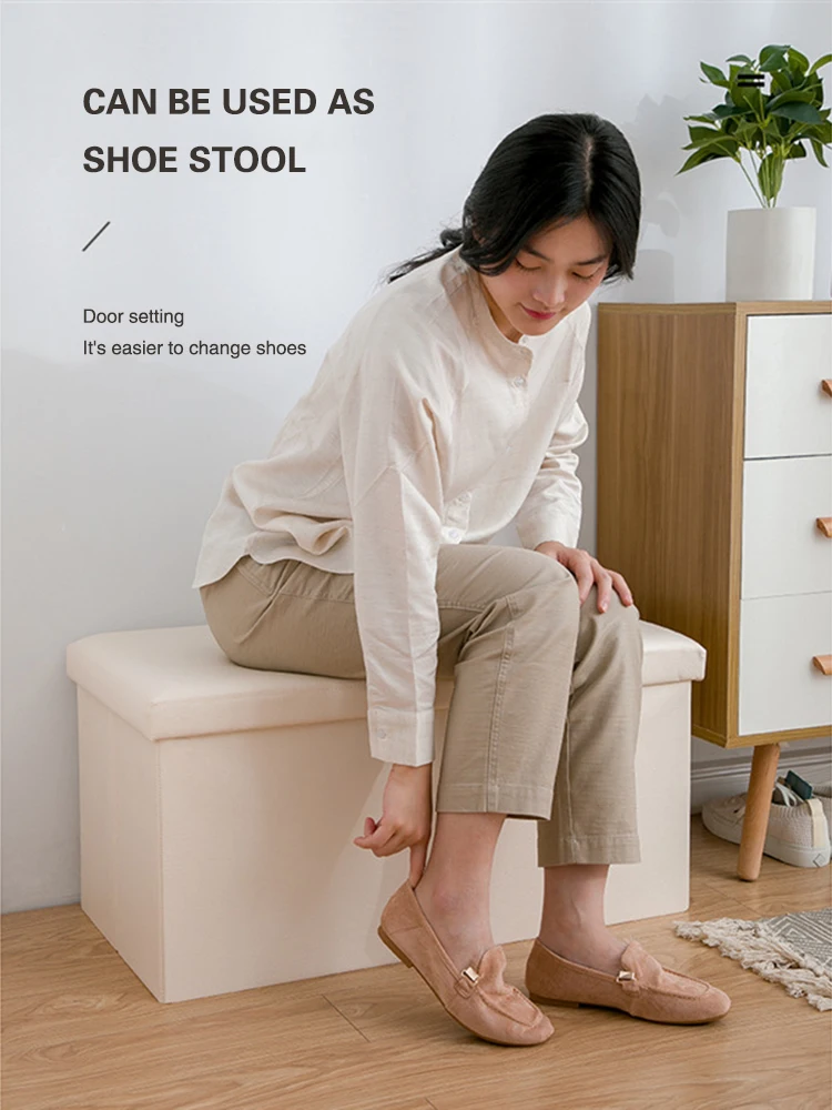 Die Oberfläche aus synthetischem Leder ist angenehm weich, strapazierfähig und besonders pflegeleicht. Staub oder leichte Verschmutzungen lassen sich einfach abwischen – ideal für den täglichen Gebrauch. Die stabile Innenkonstruktion sorgt für eine zuverlässige Belastbarkeit, sodass der Hocker sowohl als Sitzgelegenheit als auch als Aufbewahrungslösung überzeugt.