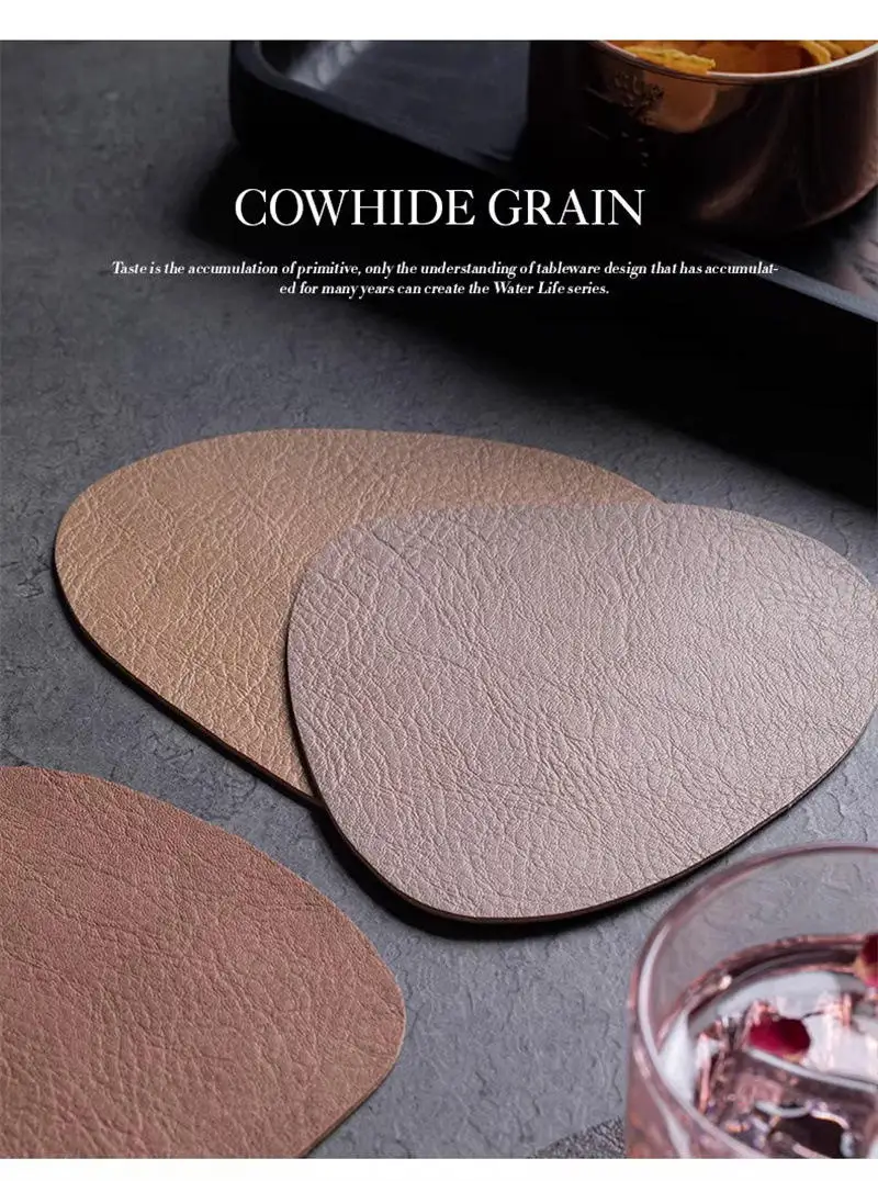 4 runde Leder Untersetzer im Set