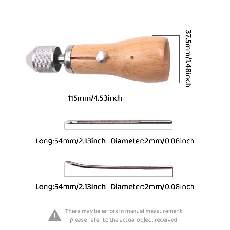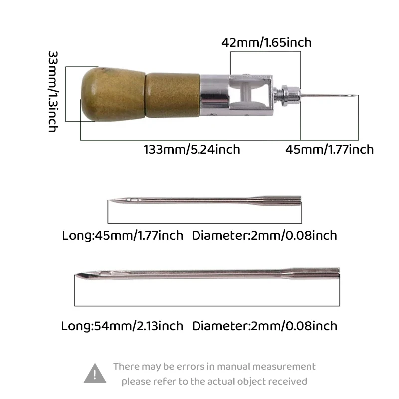 Die robuste Nähahle aus Metall überzeugt durch ihre Stabilität und Widerstandsfähigkeit gegen Rost und Verformung. Der ergonomische Holzgriff liegt angenehm in der Hand und ermöglicht ermüdungsarmes Arbeiten – auch bei längeren Reparaturen. Alle Werkzeuge sind auf Langlebigkeit ausgelegt und ideal für den regelmäßigen Einsatz.