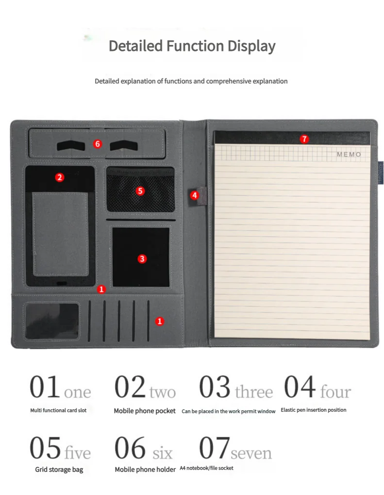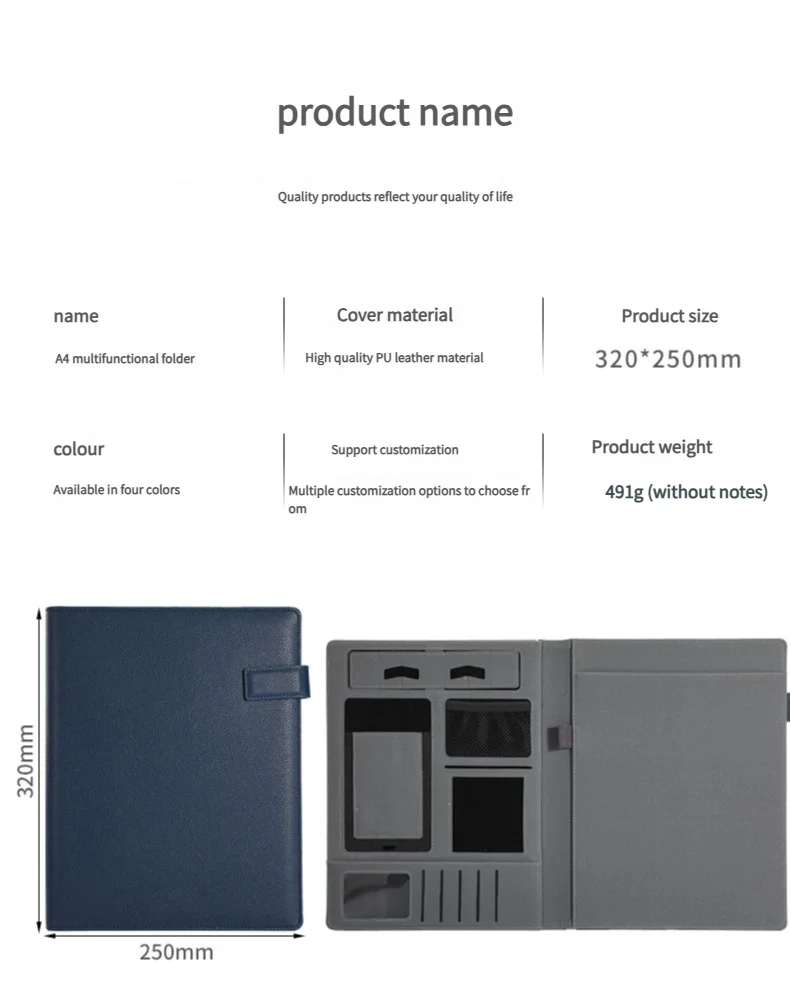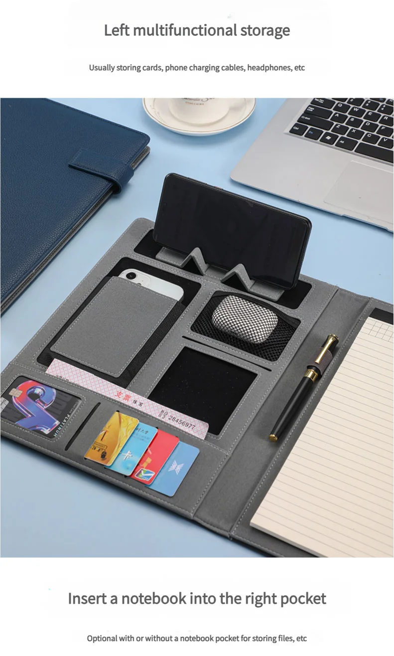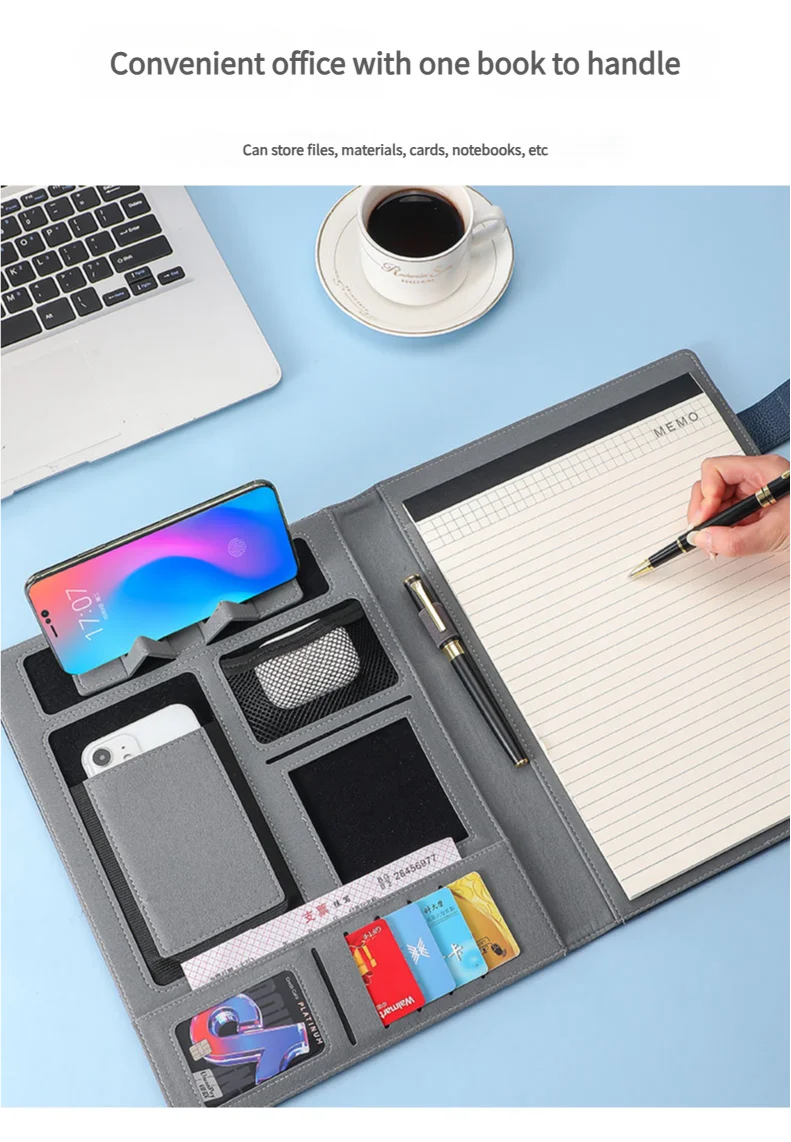 Mit dieser A4 multifunktionalen Business Meeting Mappe investieren Sie in Organisation, Effizienz und einen professionellen Auftritt. Ein praktisches Accessoire für alle, die ihre Arbeitsabläufe klar strukturieren möchten.