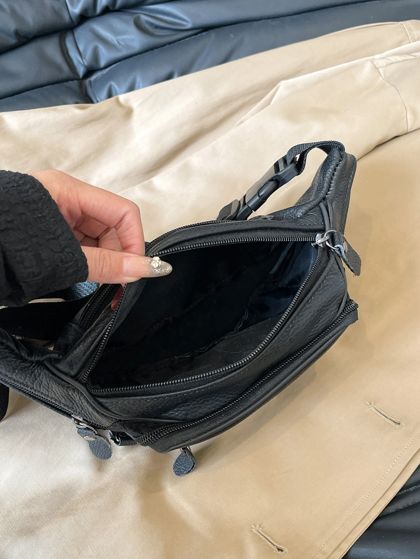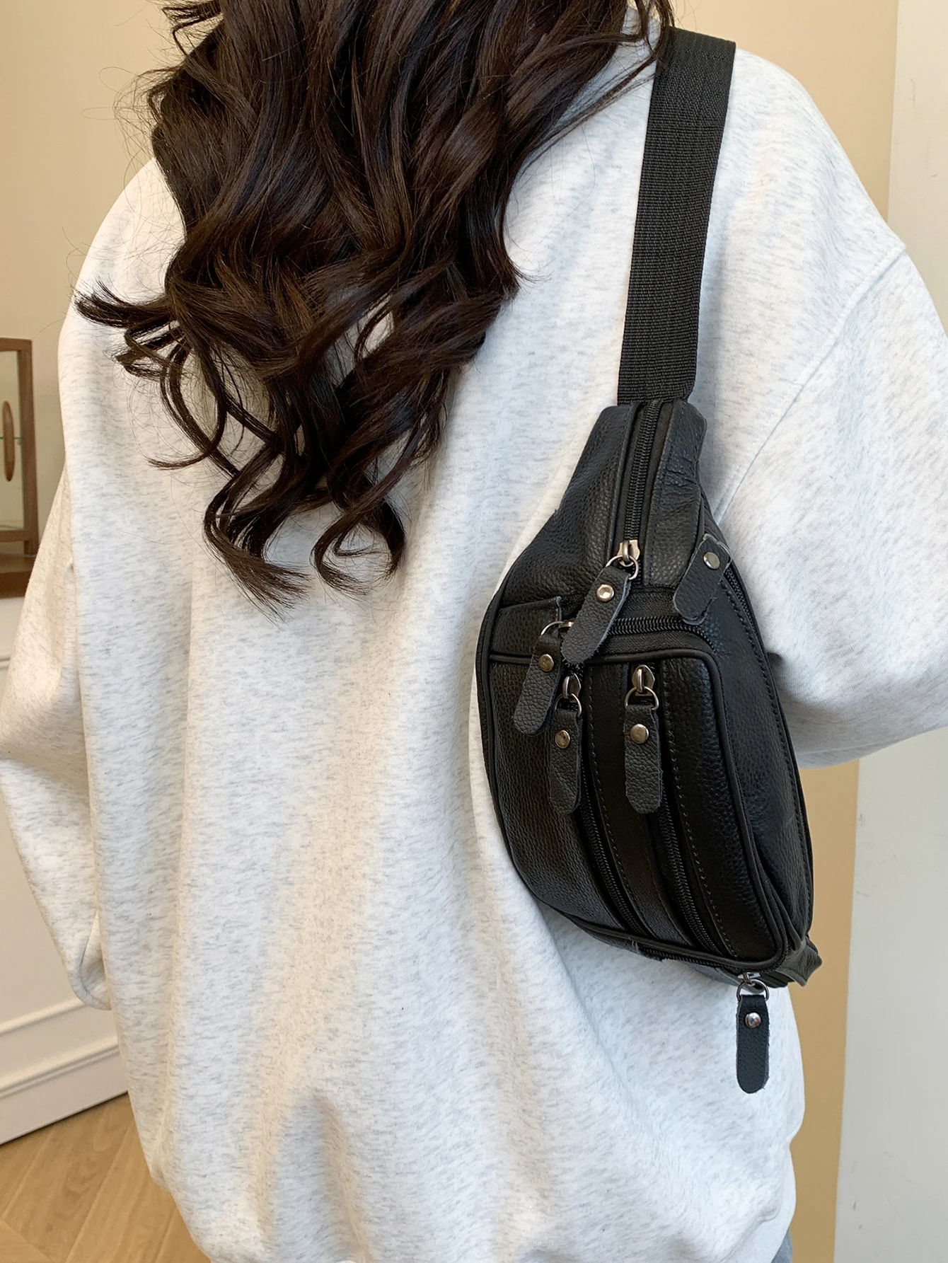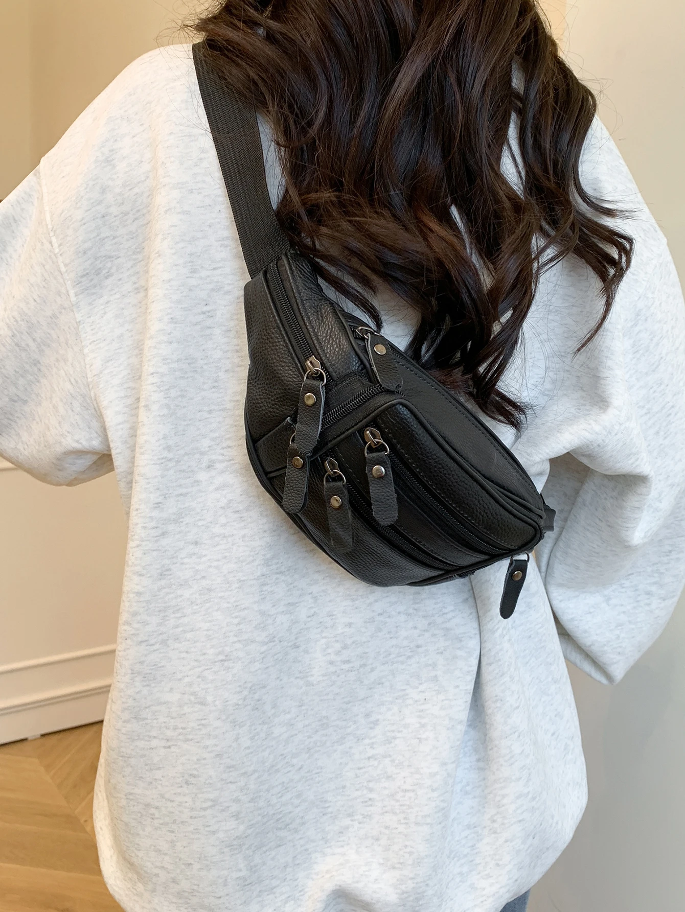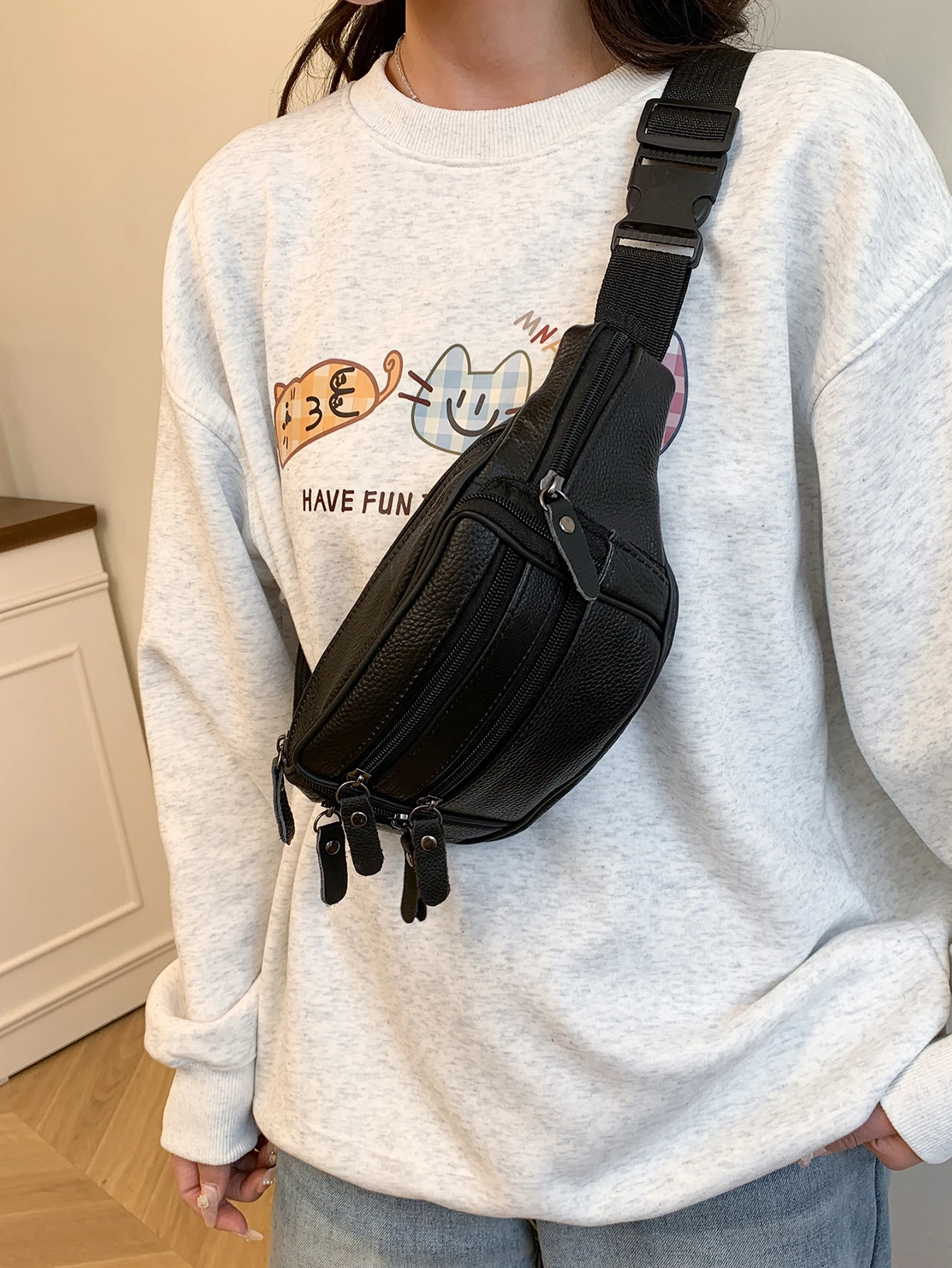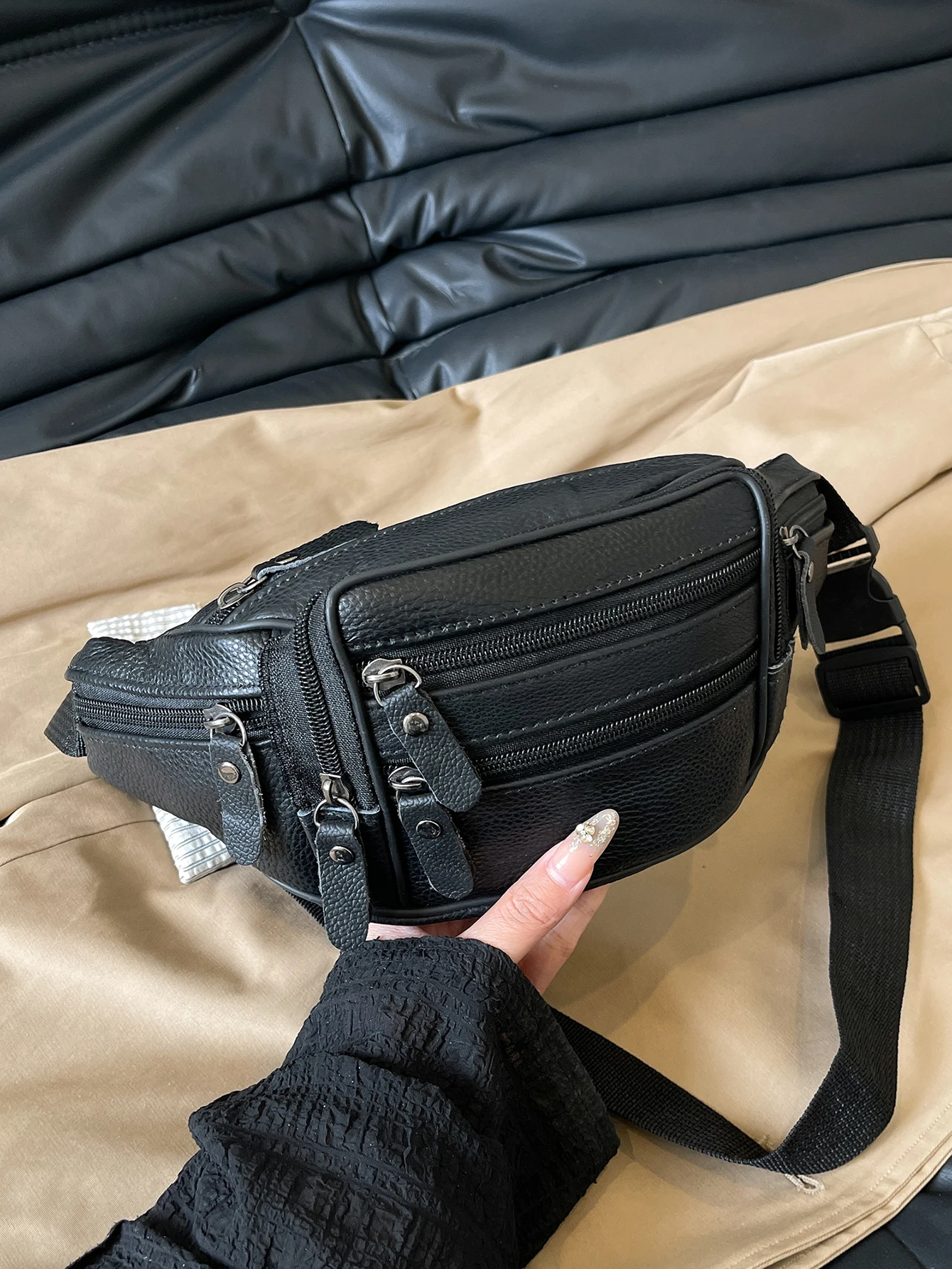 Dank des verstellbaren Schultergurts (60–105 cm) kann die Tasche klassisch um die Taille, als Crossbody oder Chest Bag getragen werden. So passt sie sich flexibel jedem Anlass und Outfit an, vom Casual Streetstyle bis zum eleganten Travel-Look.