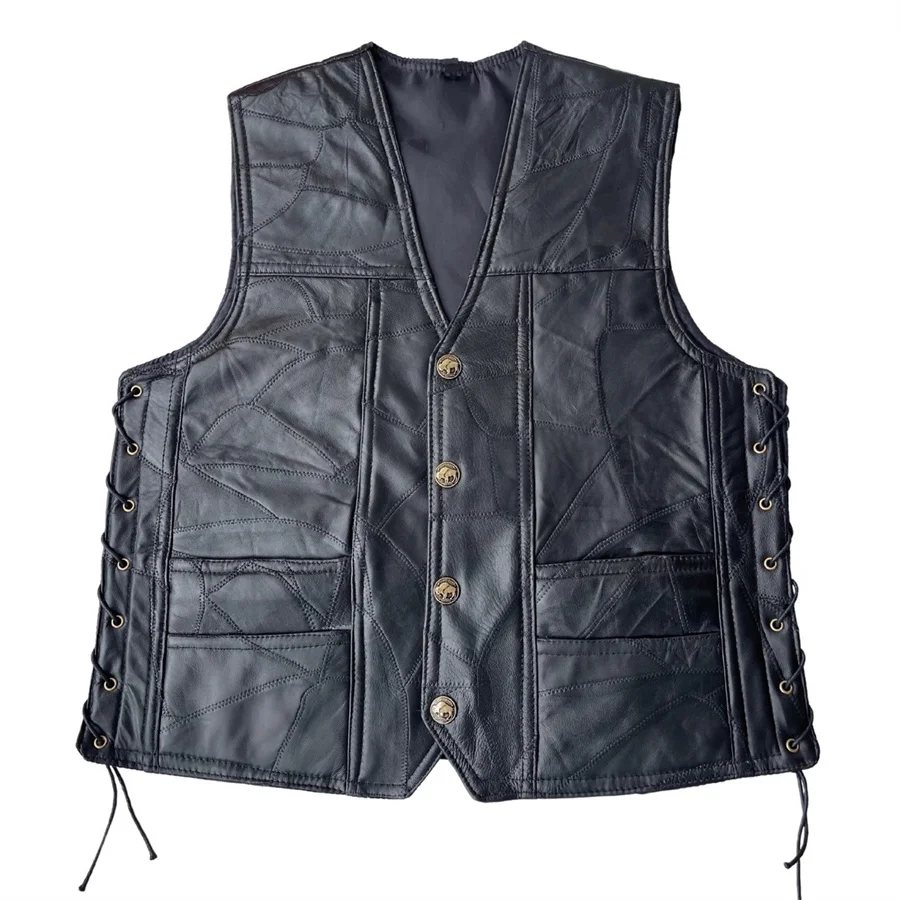 Bestickte Herren Lederweste im Punk- & Biker-Stil