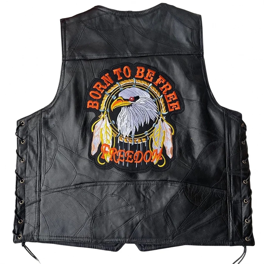 Diese bestickte Herren Motorrad Lederweste ist die perfekte Wahl für Männer, die einen kraftvollen Auftritt mit hohem Tragekomfort verbinden möchten. Der schwarze Punk-Style, kombiniert mit auffälliger Stickerei im Animal-Look, macht diese ärmellose Weste zu einem echten Statement für Herbst und Winter. Ideal für Motorradfahrten, Freizeit, Events oder als markantes Streetwear-Piece.