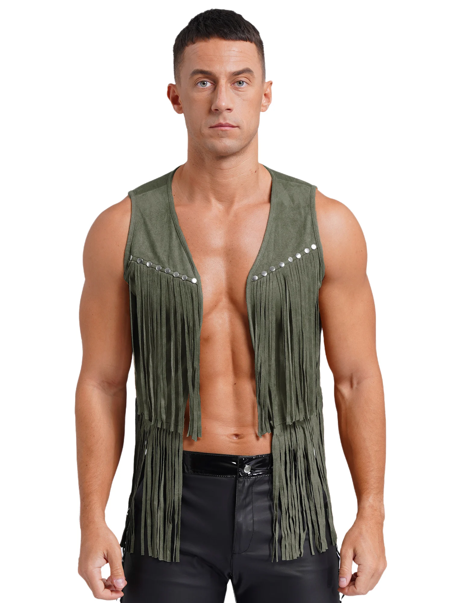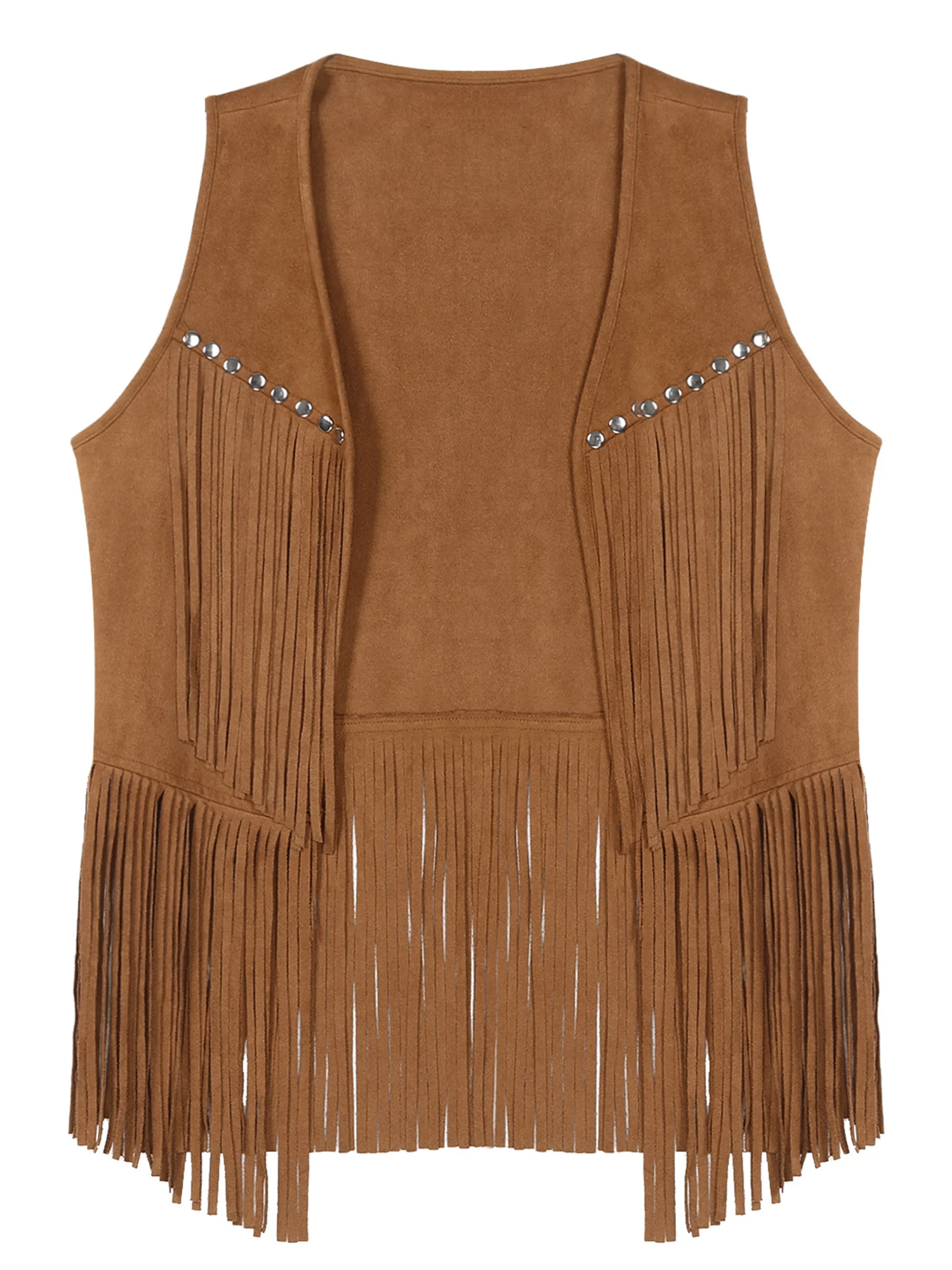Die langen, fließenden Tasseln schwingen bei jeder Bewegung mit und verleihen der Weste einen lebendigen, coolen Look. Dezente Nieten im Brustbereich setzen markante Akzente und unterstreichen den rockigen Western-Charakter. Der klassische V-Ausschnitt und das offene Frontdesign ermöglichen ein schnelles An- und Ausziehen sowie vielseitige Styling-Optionen.