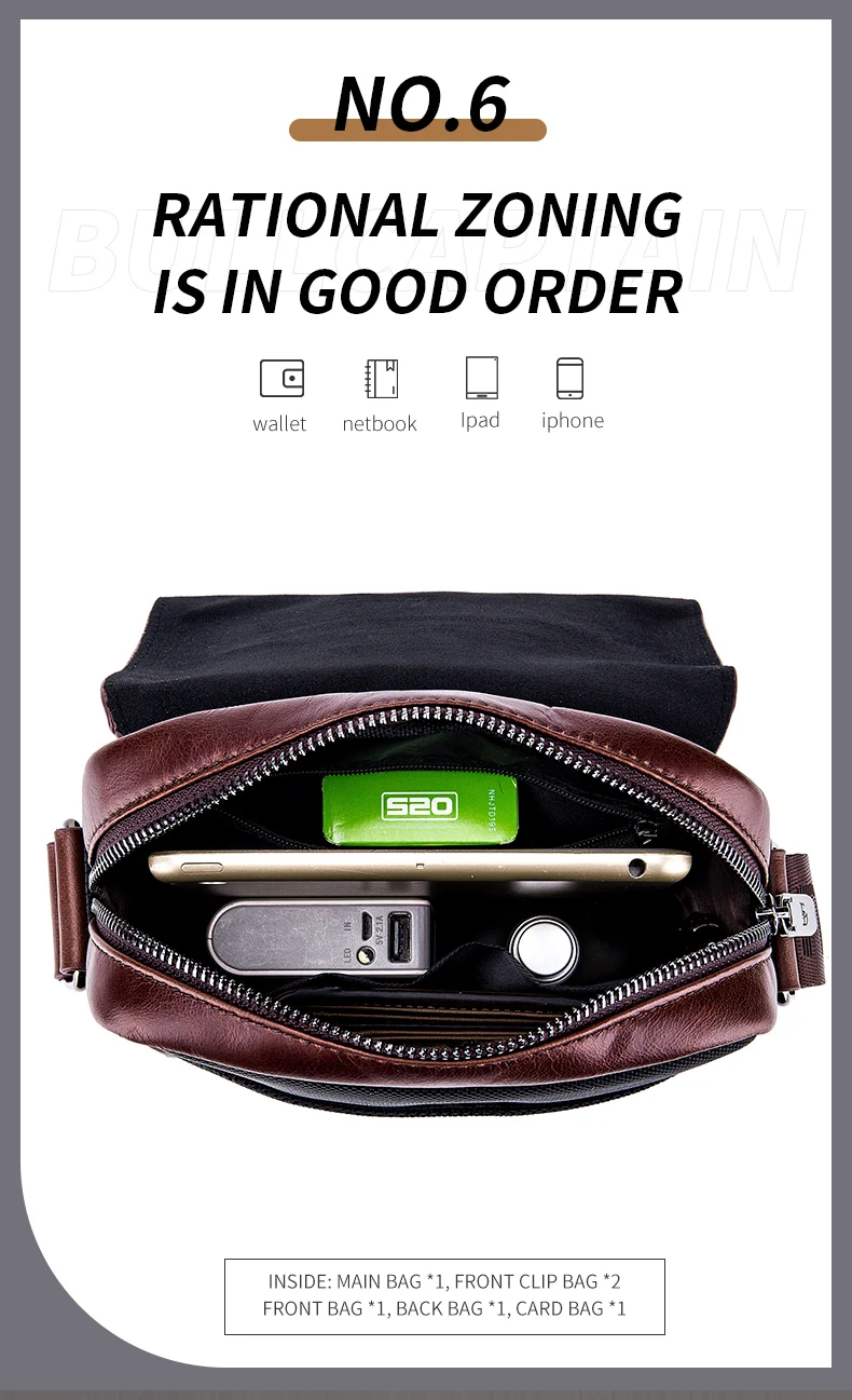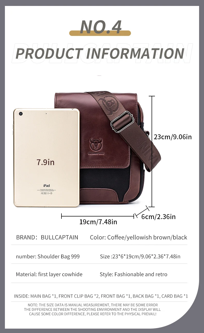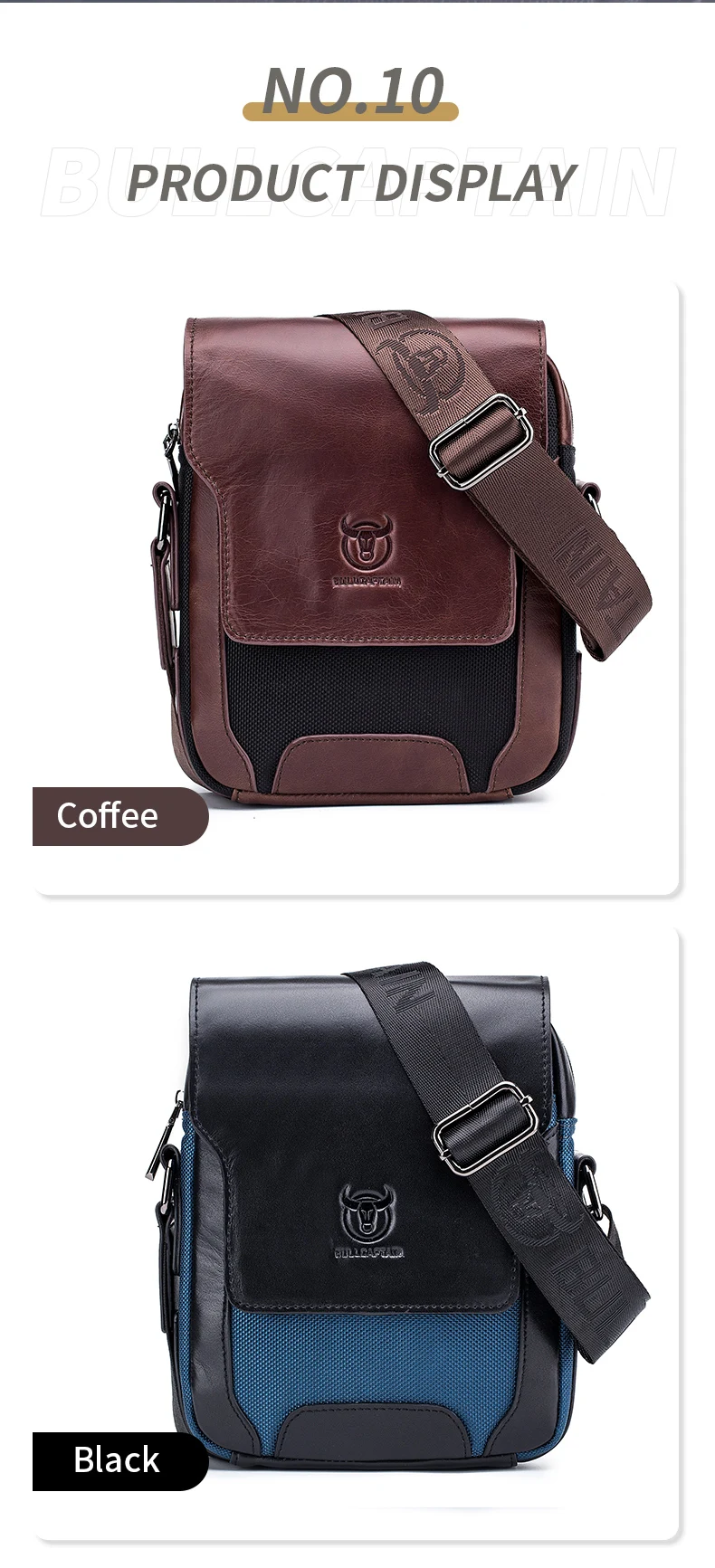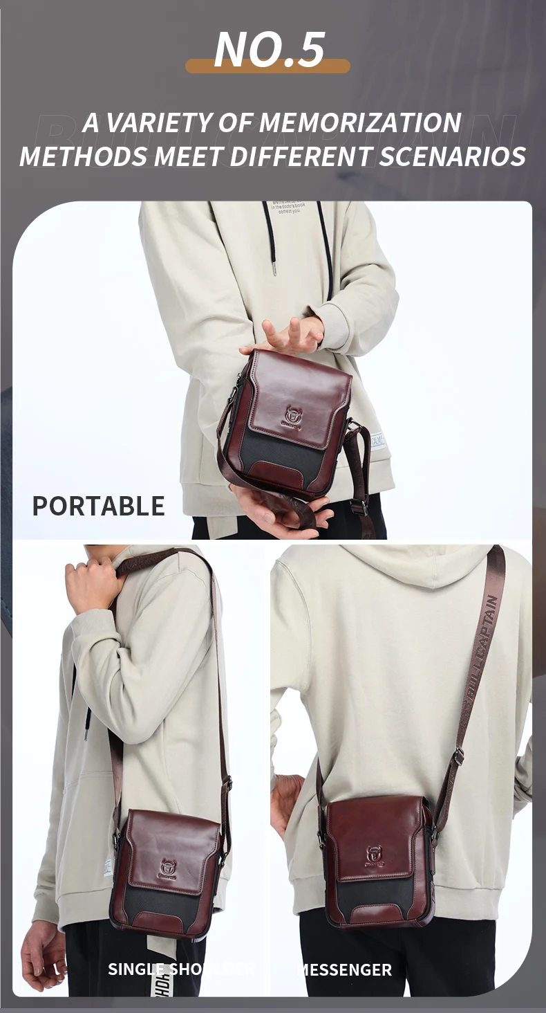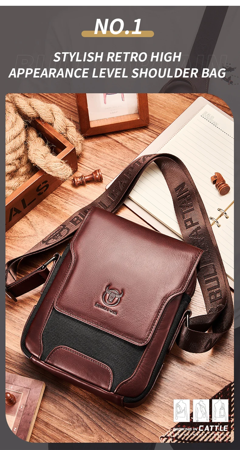 BULLCAPTAIN Herren Leder Messenger Bag – Casual & Business Crossbody Bag aus Echtem Leder