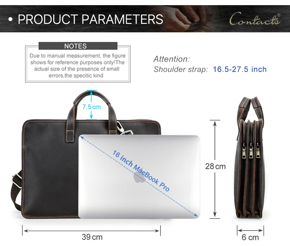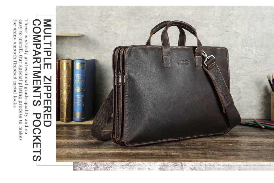 Die CONTACT’S Herren Sling Briefcase vereint klassisches Vintage-Design mit praktischer Business-Funktionalität. Ideal für Arbeit, Meetings oder Geschäftsreisen – diese echte Leder Schultertasche bietet ausreichend Platz für einen 16-Zoll Laptop, Unterlagen und persönliche Essentials. Das zeitlose Tote-Design und die hochwertige Verarbeitung verleihen jedem Outfit einen professionellen und stilvollen Look.