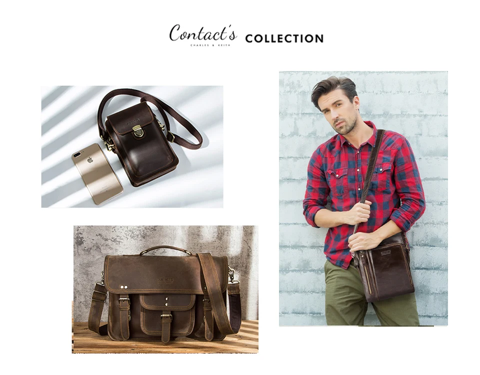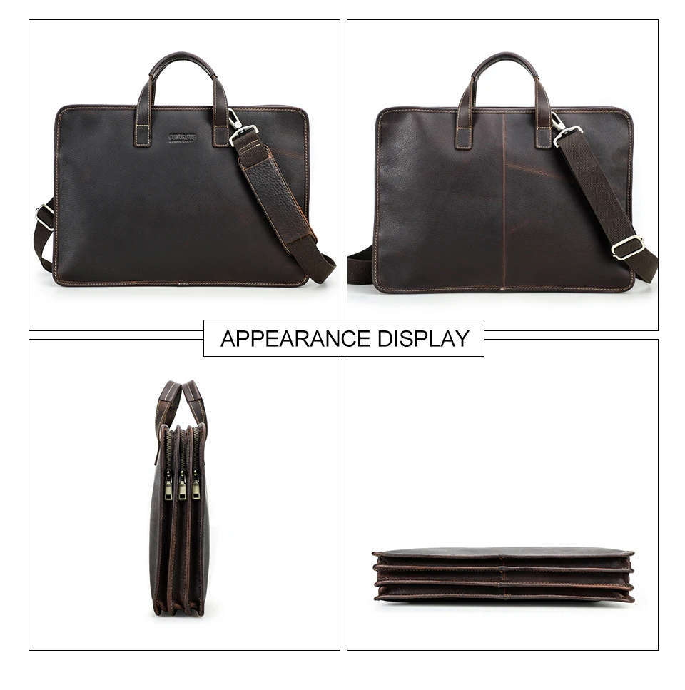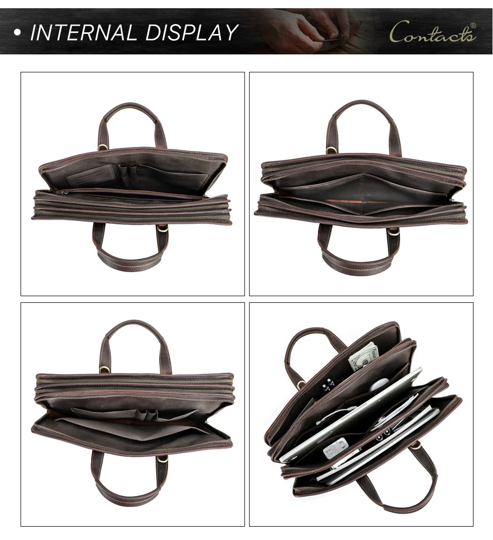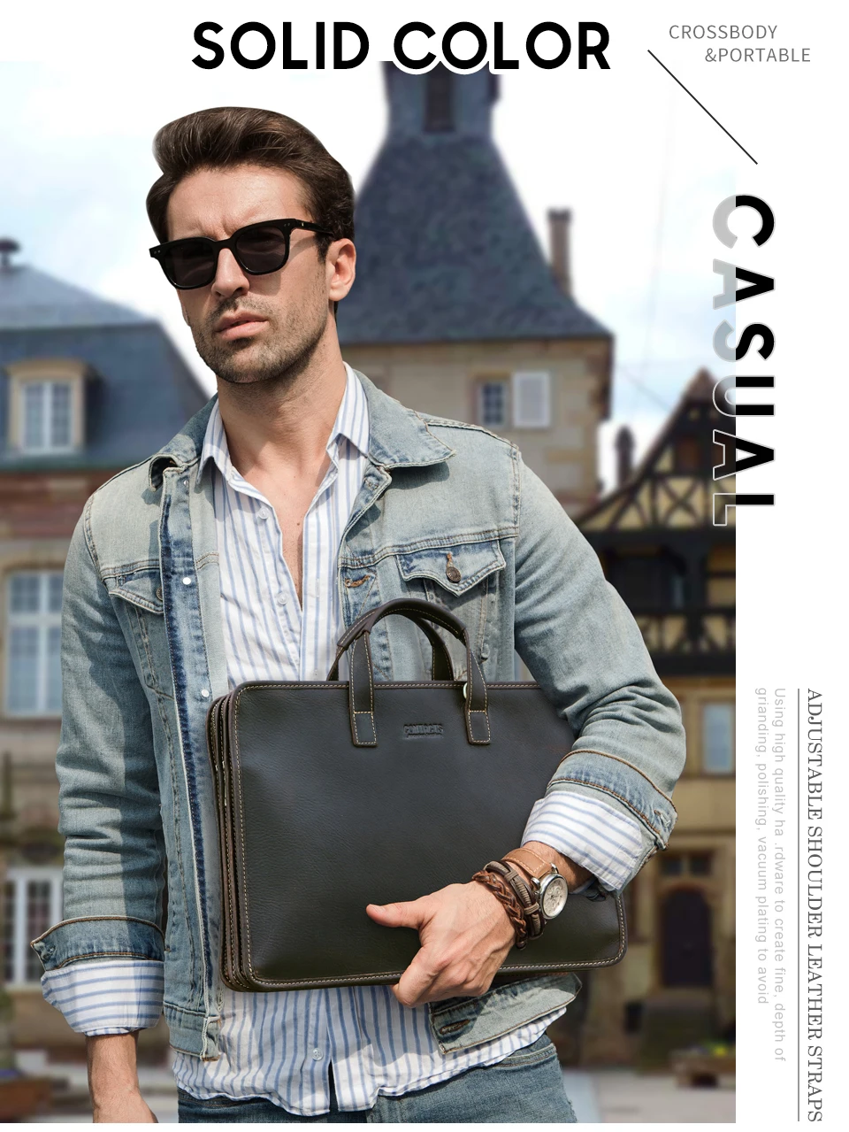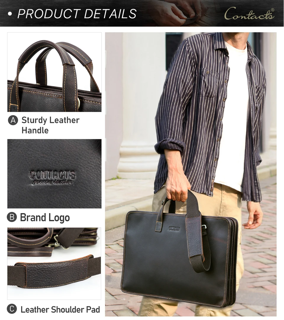 CONTACT’S Herren Leder Sling Briefcase – Vintage Business Schultertasche für Laptop bis 16"