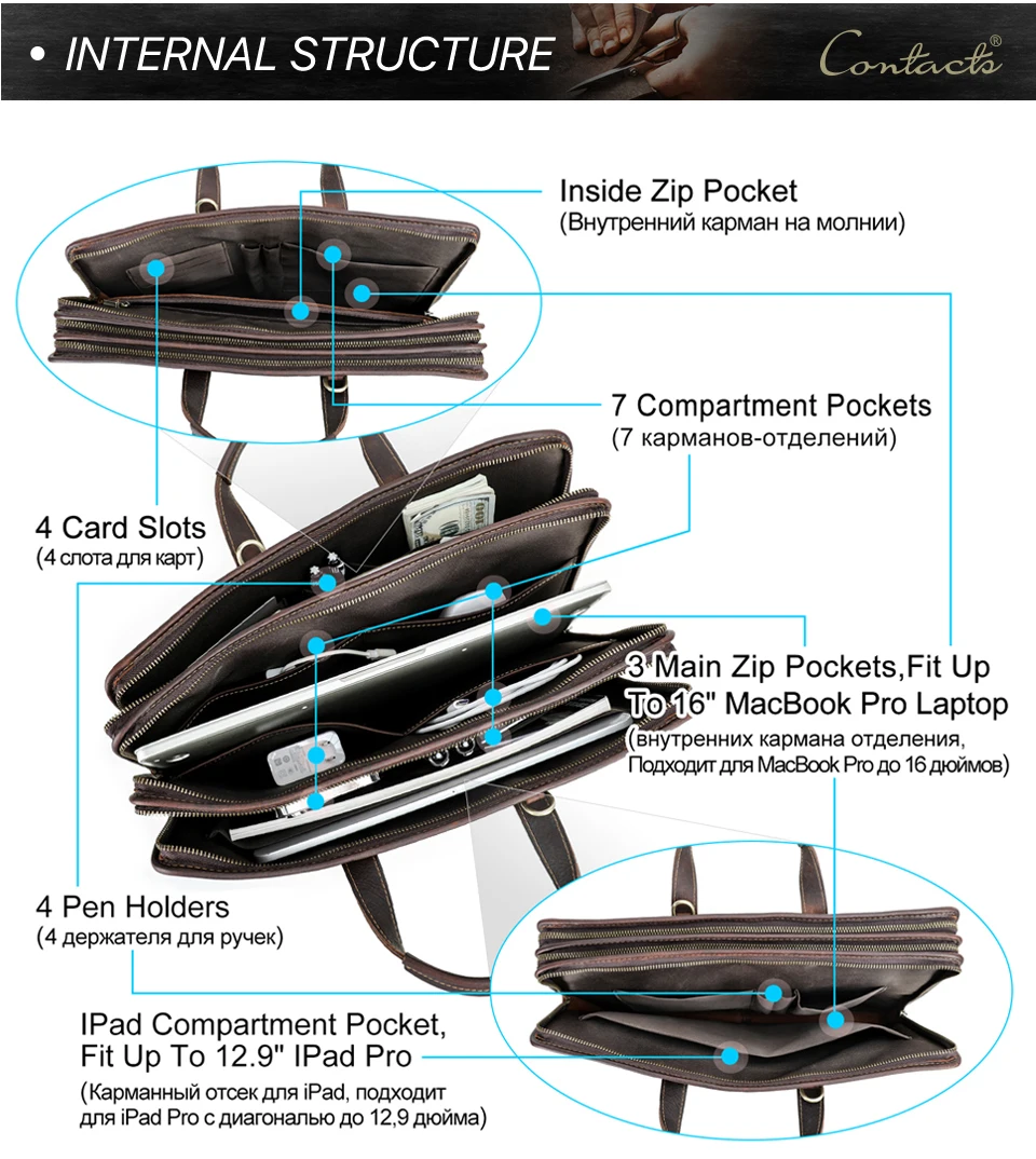Die CONTACT’S Briefcase bietet eine praktische Innenaufteilung, die Ihre Gegenstände ordentlich und griffbereit hält:
