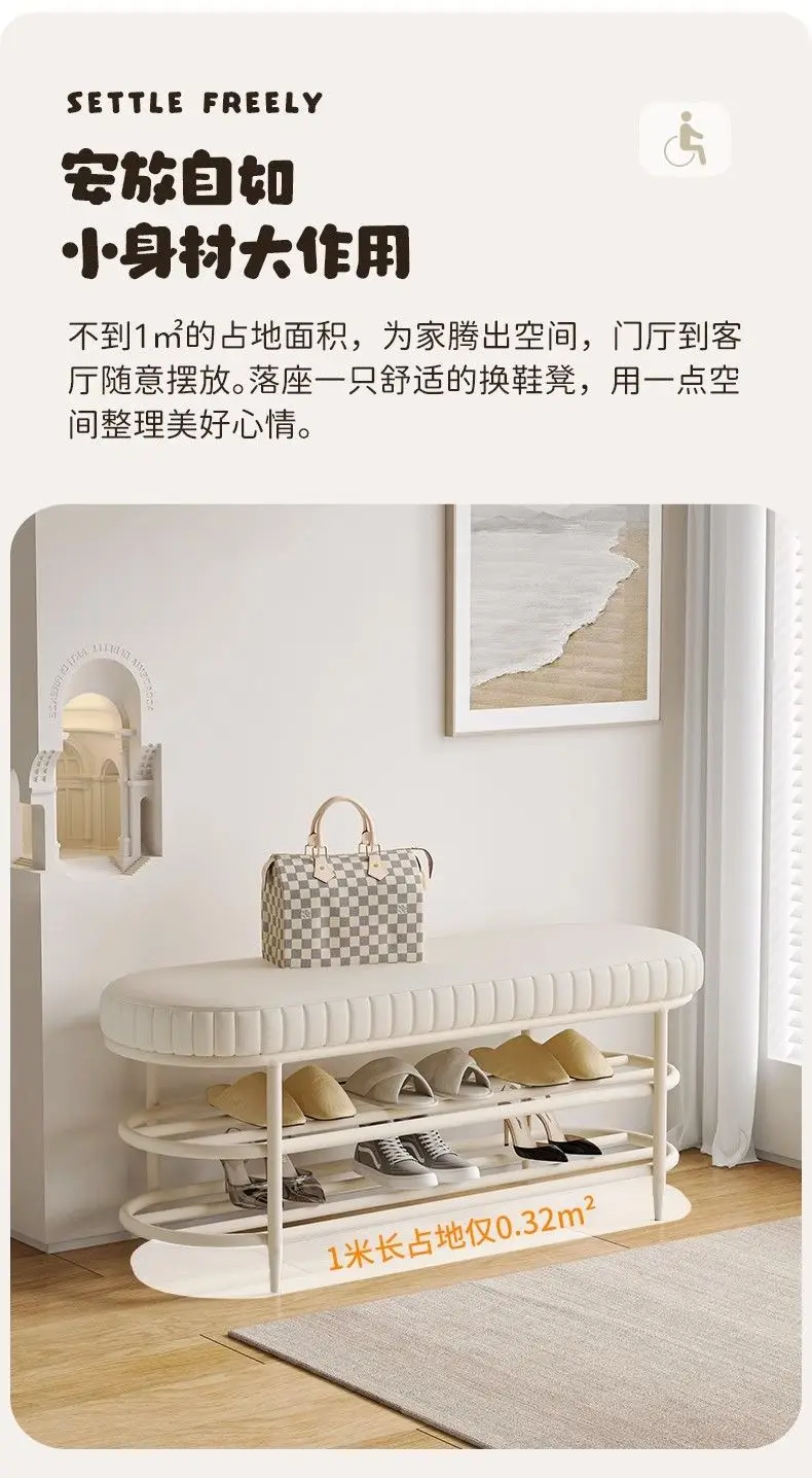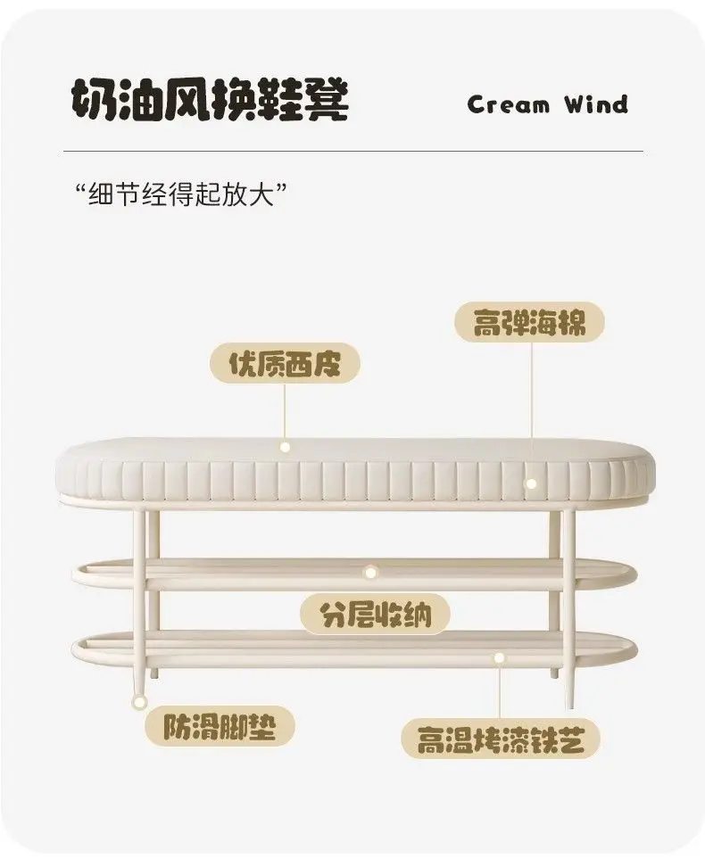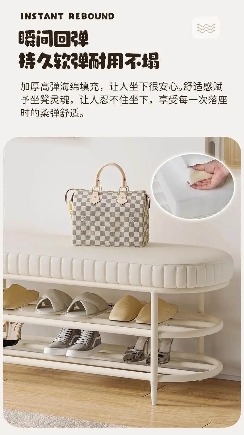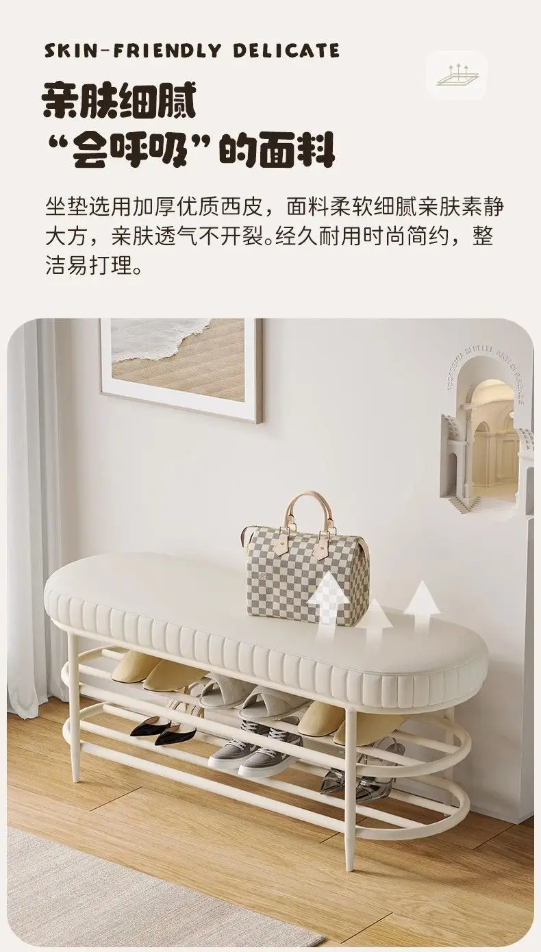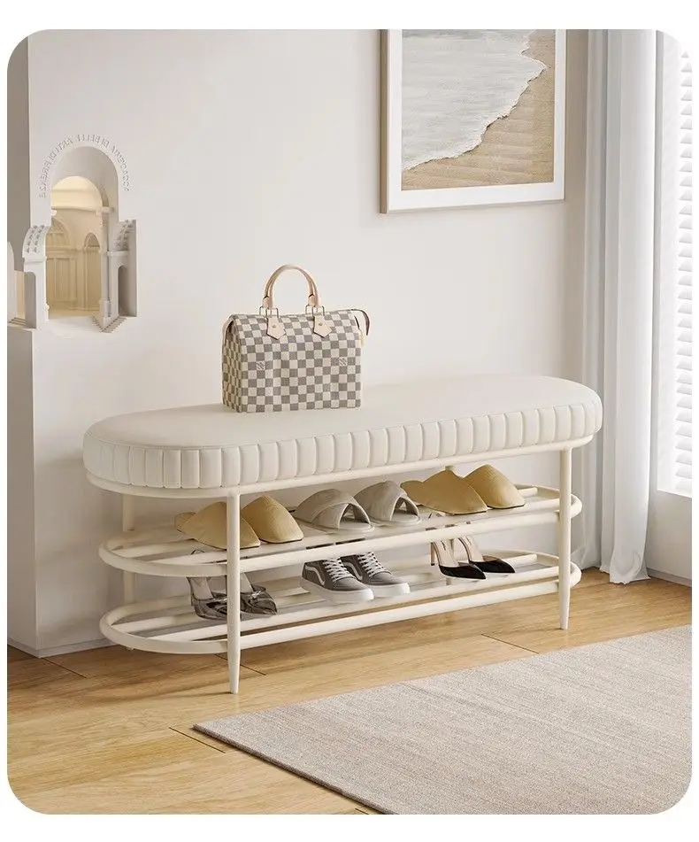 Cremefarbener Schuhhocker & Ottoman aus PU-Leder – Weiche Sitzbank für Flur, Wohnzimmer & Schlafzimmer im modernen Morocco-Stil
