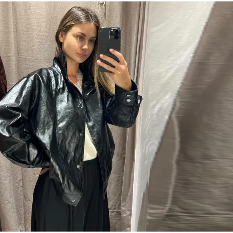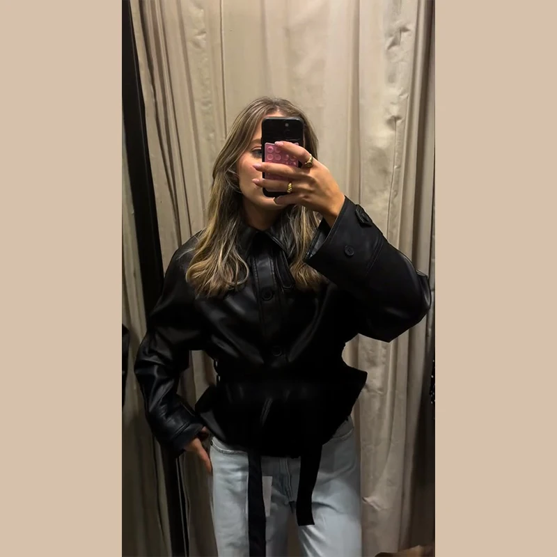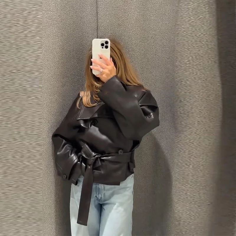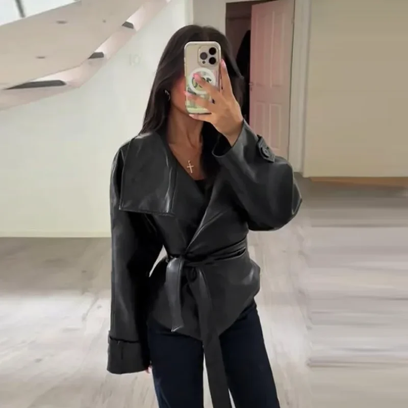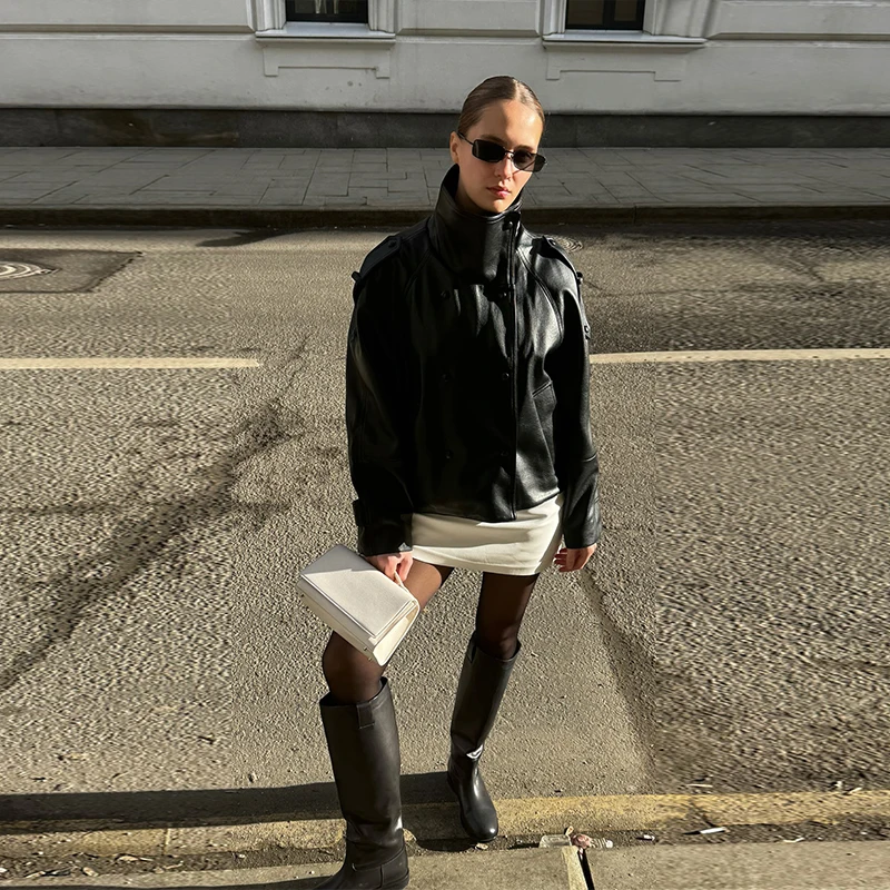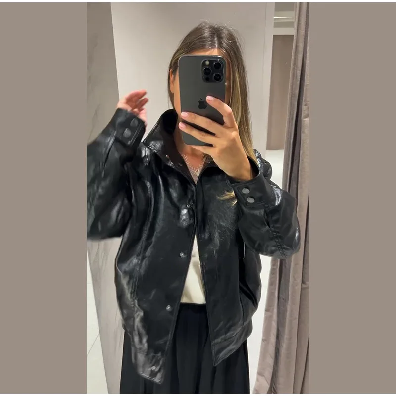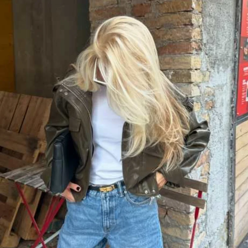Die Damen Cropped Kunstleder Jacke im Street-Vintage-Stil ist ein echtes Trendteil für Herbst und Winter 2025. Mit ihrem kurzen, modernen Schnitt, der hochwertigen Lederoptik und den praktischen Taschen-Details vereint sie urbanen High-Street-Look mit zeitloser Eleganz. Ideal für modebewusste Frauen, die einen selbstbewussten und zugleich alltagstauglichen Stil suchen.