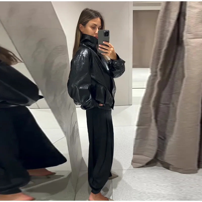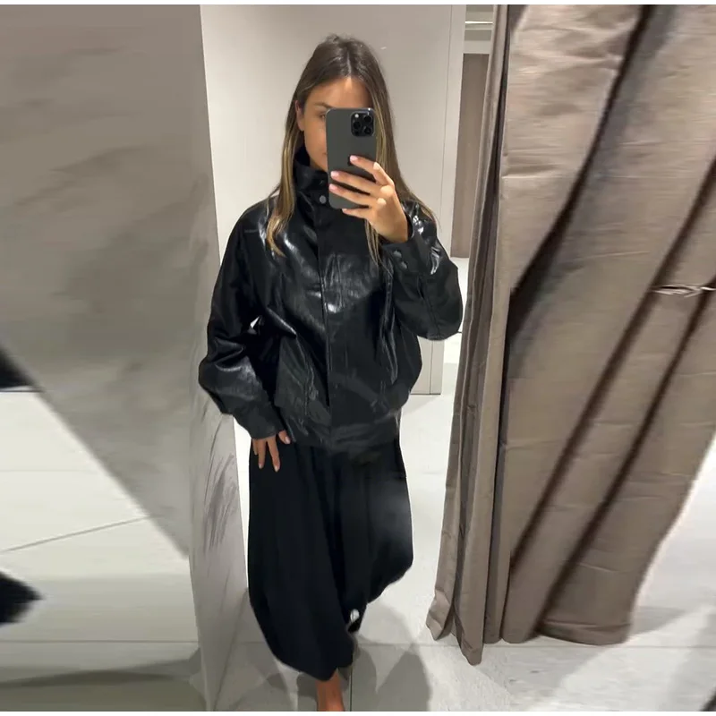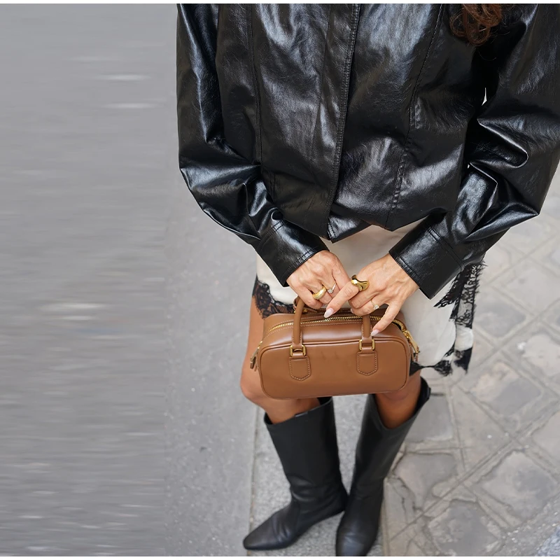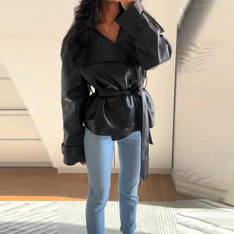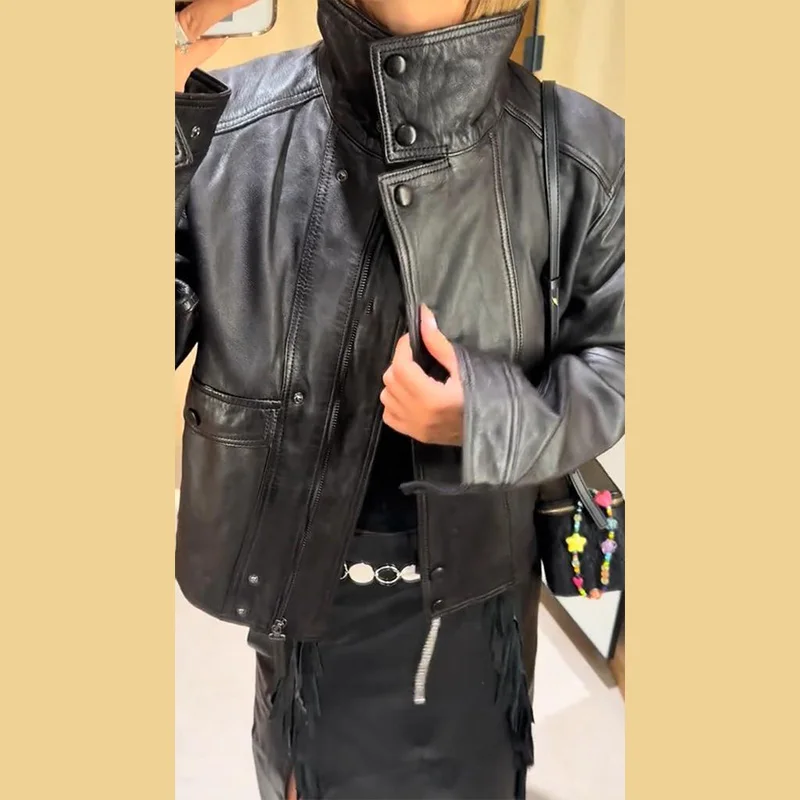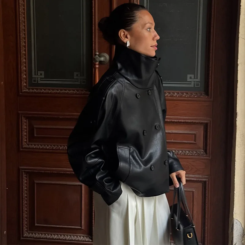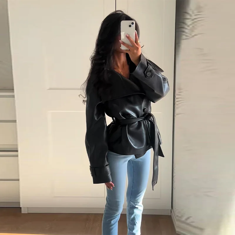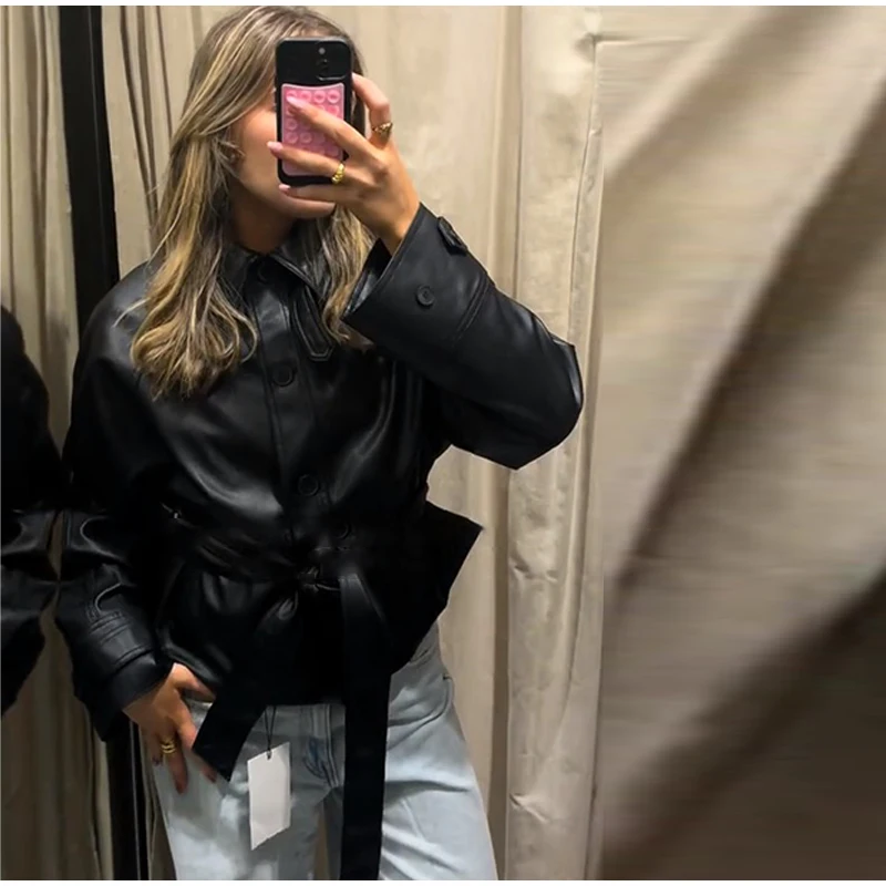 Die Damen Cropped Kunstleder Jacke im Street-Vintage-Stil ist ein echtes Trendteil für Herbst und Winter 2025. Mit ihrem kurzen, modernen Schnitt, der hochwertigen Lederoptik und den praktischen Taschen-Details vereint sie urbanen High-Street-Look mit zeitloser Eleganz. Ideal für modebewusste Frauen, die einen selbstbewussten und zugleich alltagstauglichen Stil suchen.