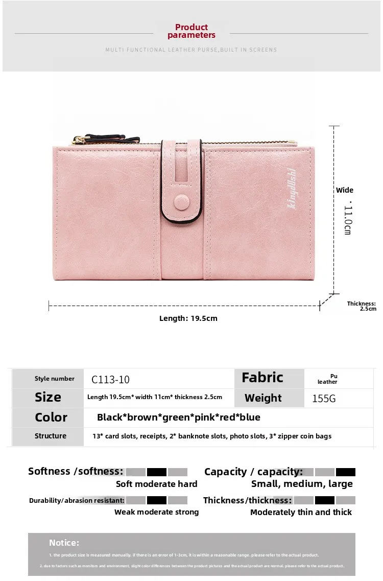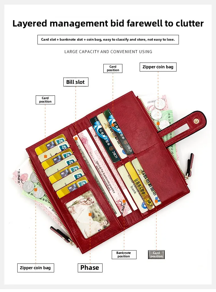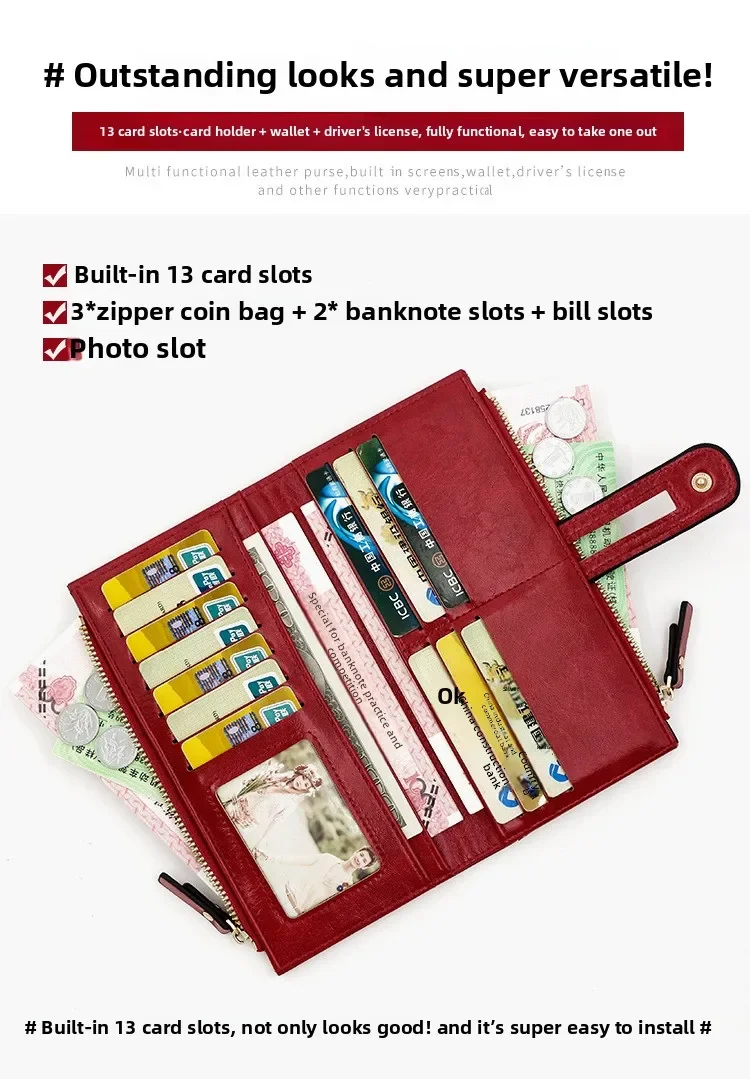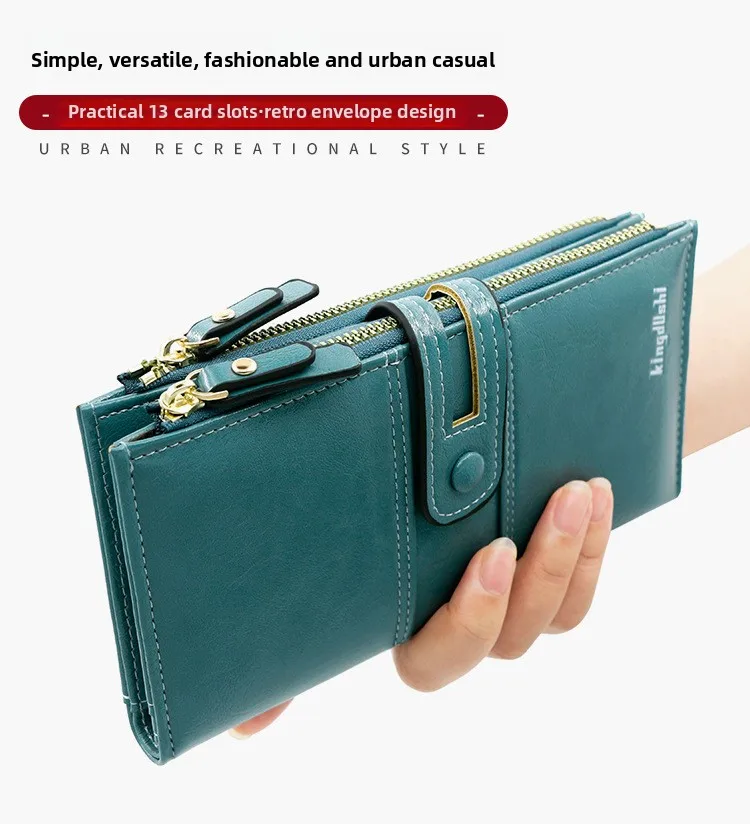 Dank ihrer langen Form bietet diese Wallet für Frauen maximale Kapazität, ohne dabei unhandlich zu wirken. Das robuste Innenfutter aus Polyester sorgt für Langlebigkeit, während die stabile Verarbeitung auch bei täglicher Nutzung überzeugt. Ob als klassische Damenbörse, Kartenhalter, Portemonnaie mit Reißverschluss oder modische Geldtasche – diese Wallet ist vielseitig einsetzbar.