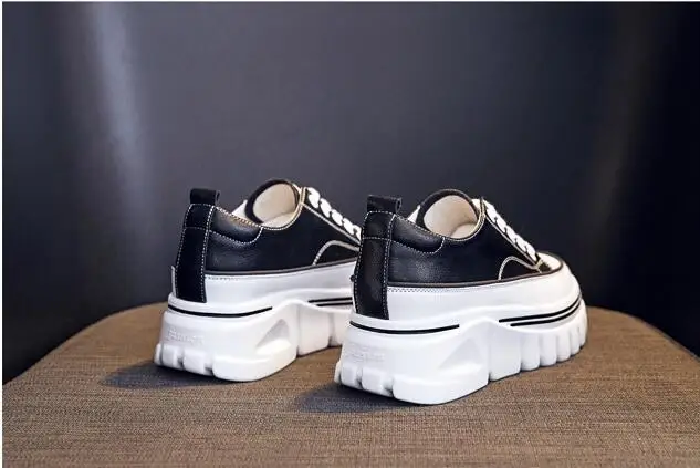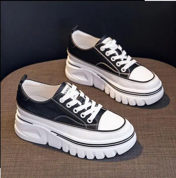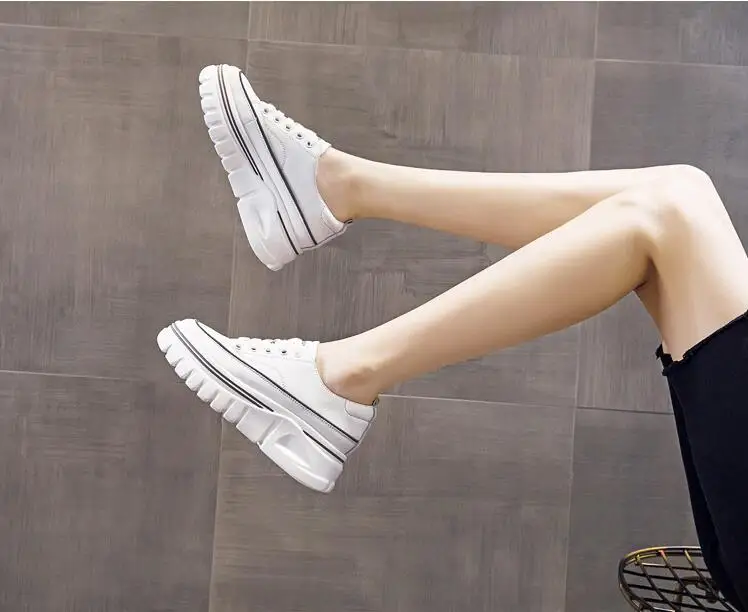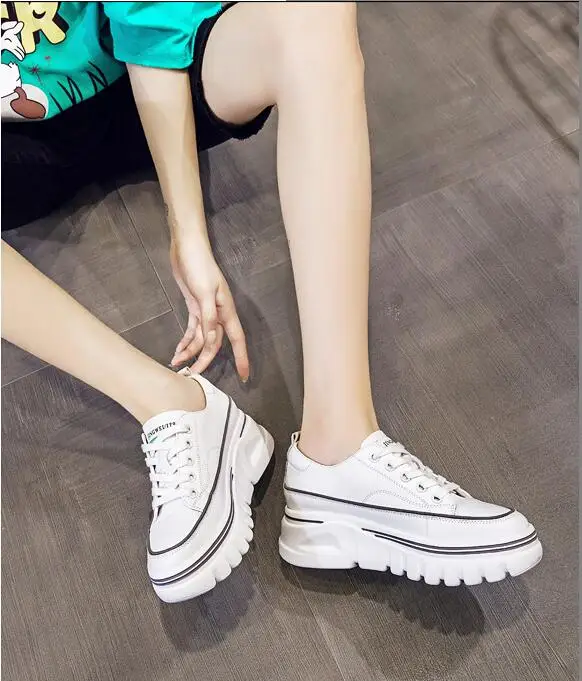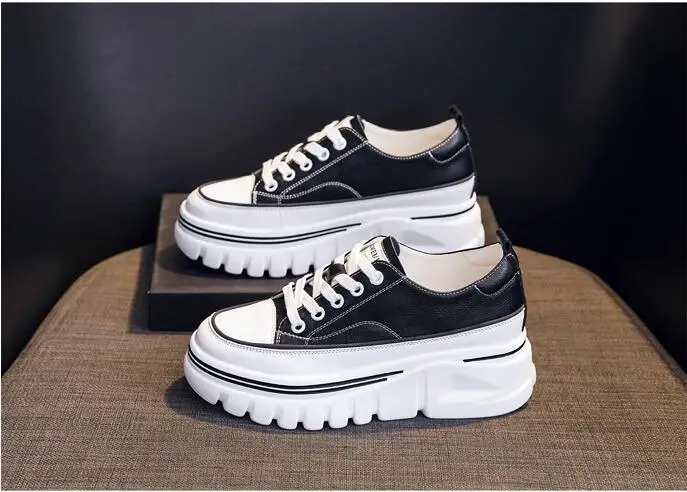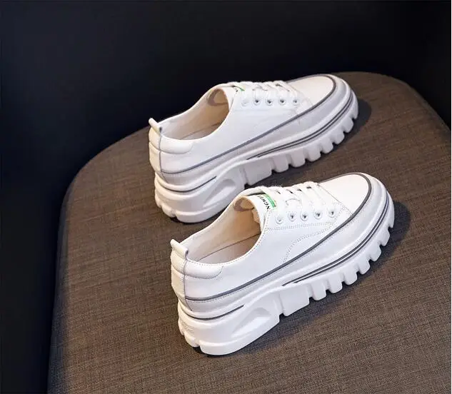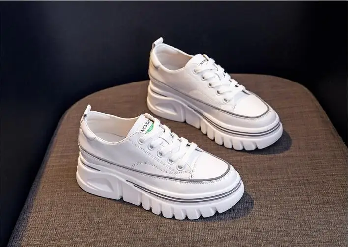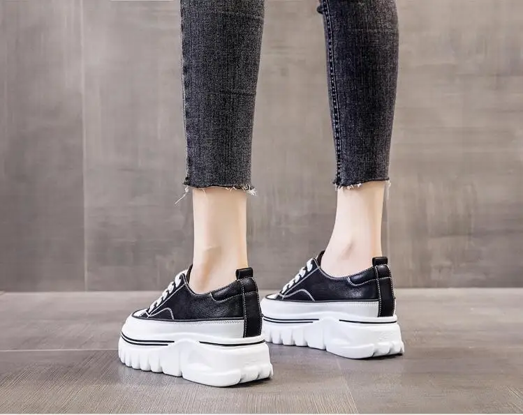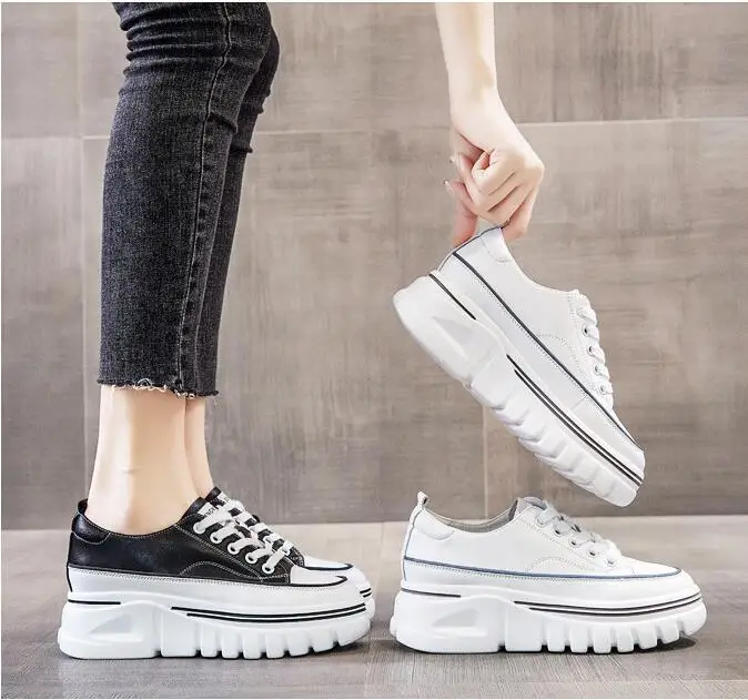 Damen Plateau Sneaker aus echtem Leder – 6,5 cm High Platform Chunky Sneakers für Frühling & Herbst