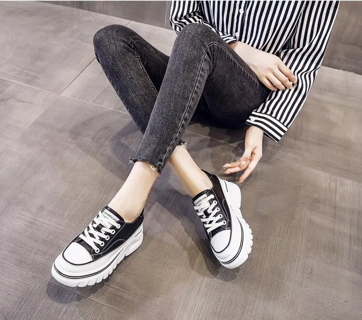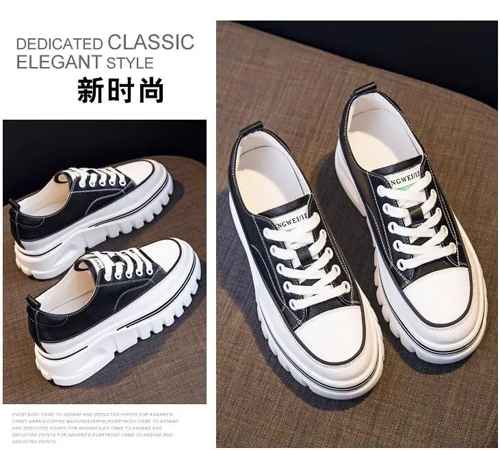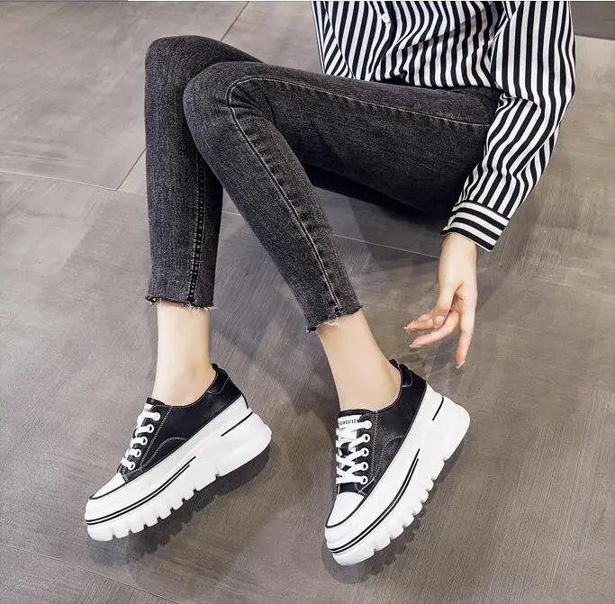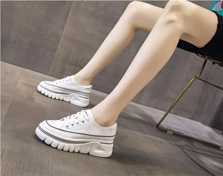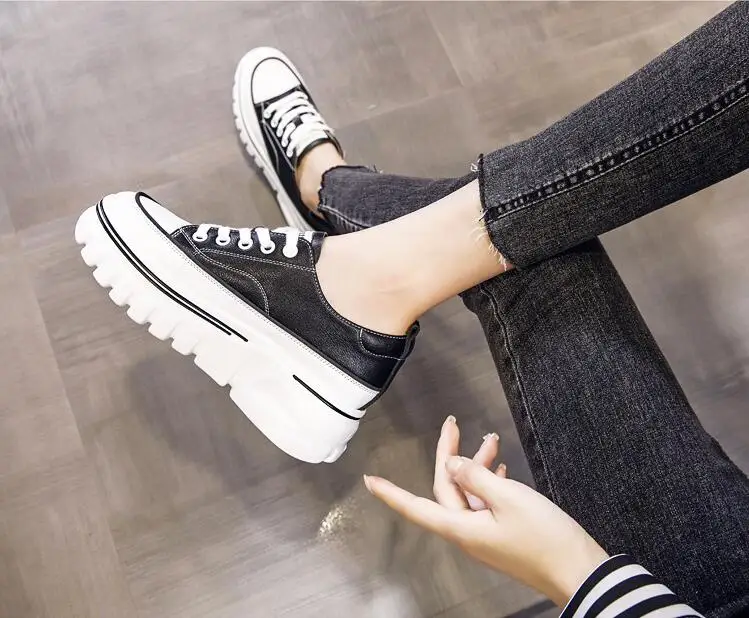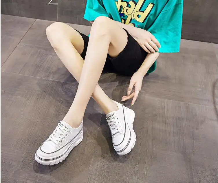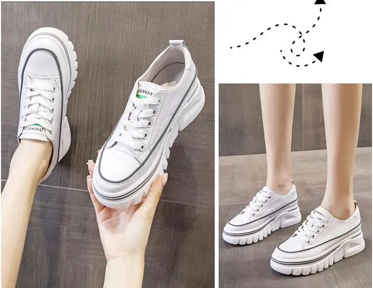 Damen Plateau Sneaker aus echtem Leder – 6,5 cm High Platform Chunky Sneakers für Frühling & Herbst