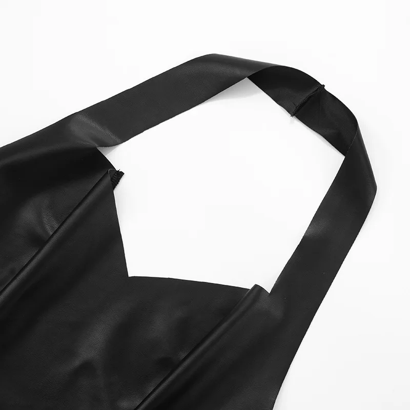 Das ärmellose Halter-Top im Lederlook setzt die Schultern und den Rücken elegant in Szene. Der schlanke Schnitt sorgt für eine feminine Linienführung, während das elastische Material für angenehmen Tragekomfort sorgt. Das Top liegt weich auf der Haut und passt sich optimal der Körperform an – ideal für einen selbstsicheren Look ohne Einengen.