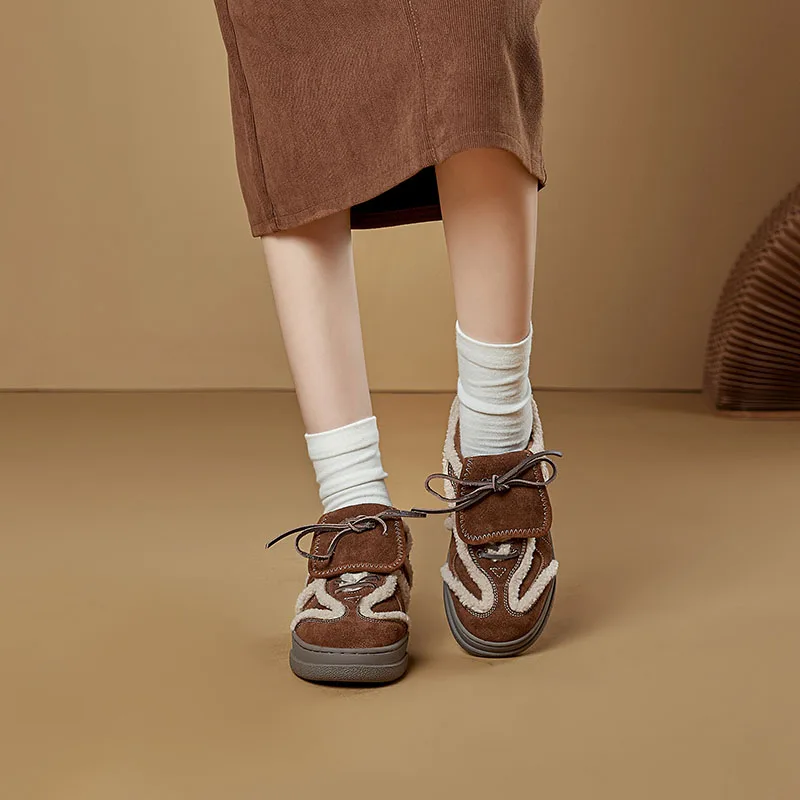 Dank der größengetreuen Passform sitzen die Schuhe bequem und sicher. Der klassische Schnürverschluss ermöglicht eine individuelle Anpassung, während das moderne Patchwork-Design und der sportlich inspirierte Look die Sneaker zu einem echten Allrounder machen. Sie passen perfekt zu Jeans, Stoffhosen, Strickkleidern oder Wintermänteln.