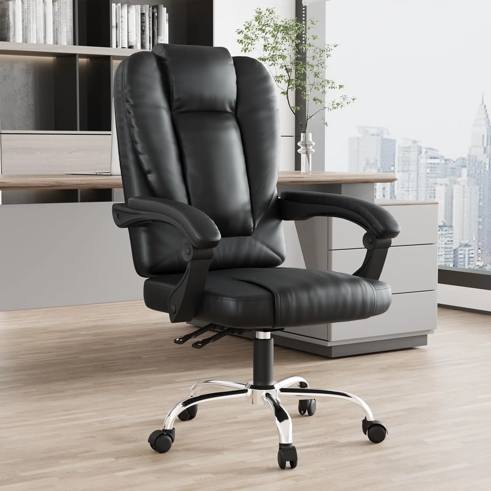 Ergonomischer Bürostuhl aus PU-Leder – Höhenverstellbarer Executive Drehstuhl mit High-Back Rückenlehne, Federpolster & Rollen