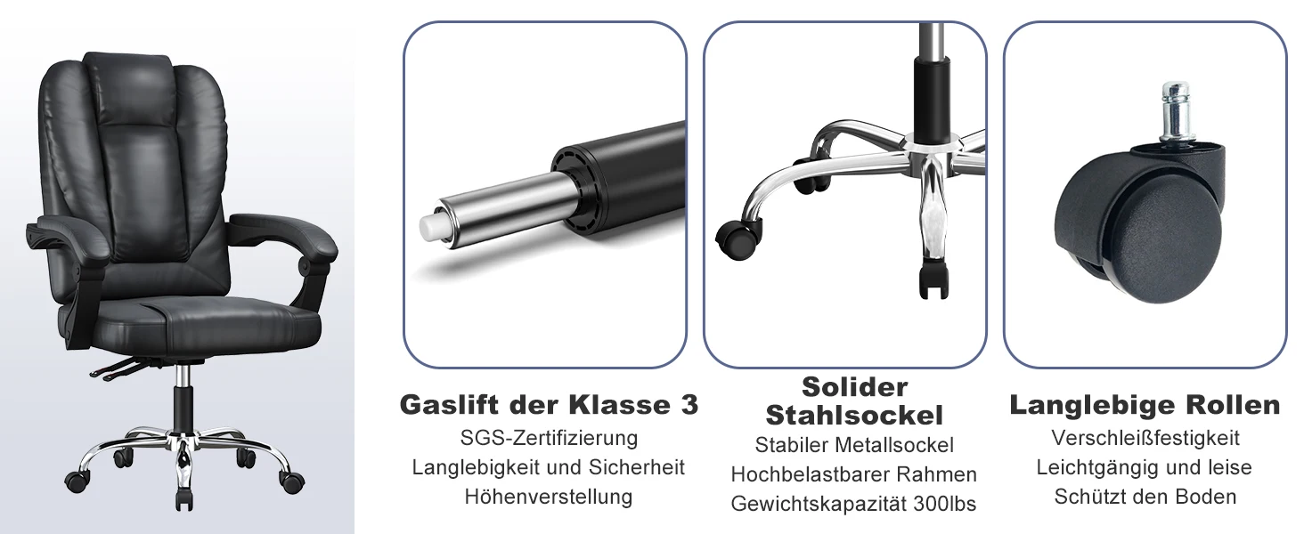 Erleben Sie ergonomisches Sitzen neu. Dieser Executive Bürostuhl aus PU-Leder bietet Komfort, Stabilität und ein modernes Erscheinungsbild – die perfekte Wahl für produktives Arbeiten. Jetzt bei LEDER-KAUFEN.COM entdecken und Ihren Arbeitsplatz aufwerten!