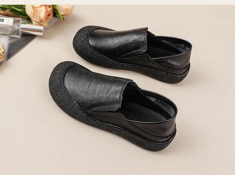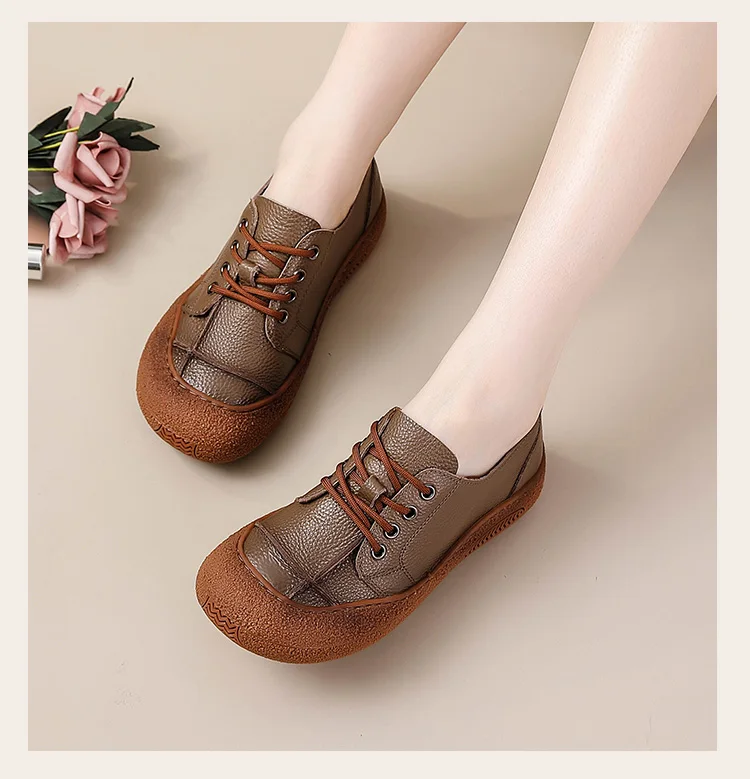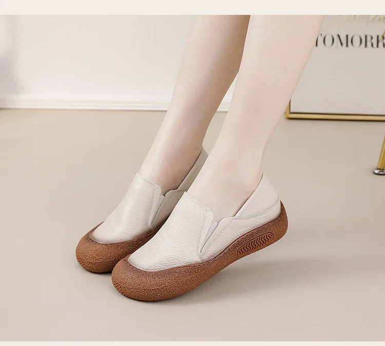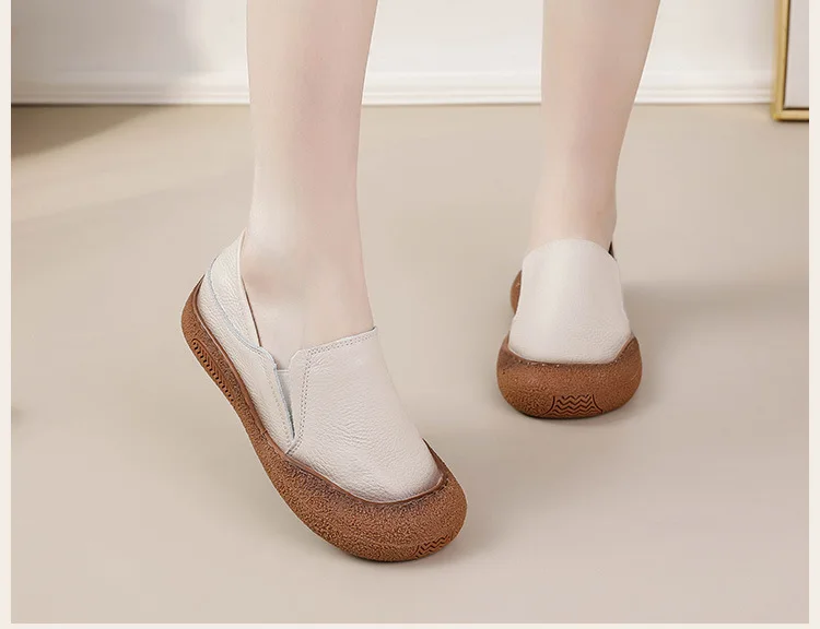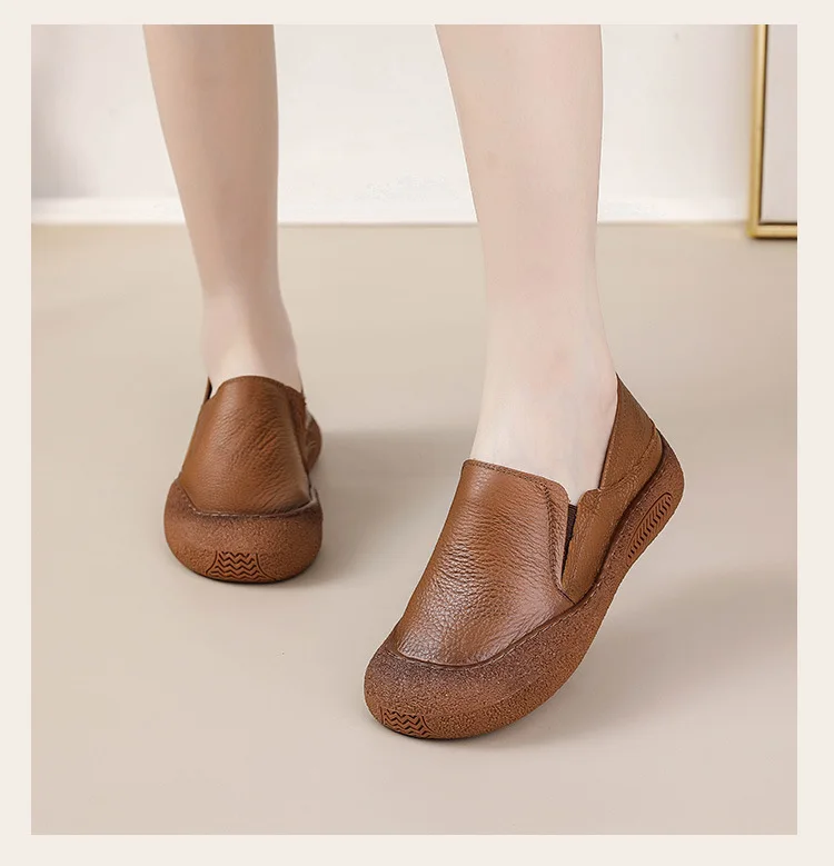 Die feerldi Damen Leder Flats WB-222E sind perfekt für Frauen, die elegante, langlebige Schuhe für Alltag, Büro oder Freizeit suchen. Hergestellt aus hochwertigem echtem Leder, bieten diese handgefertigten Oxfords maximale Flexibilität und Komfort. Das Slip-On-Design erleichtert das An- und Ausziehen, während die runde Zehenform bequem Platz für breite Füße bietet.