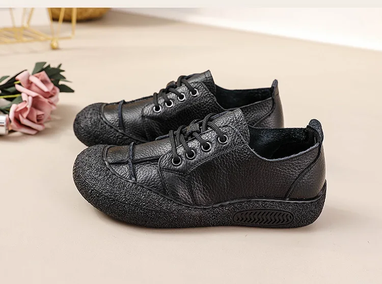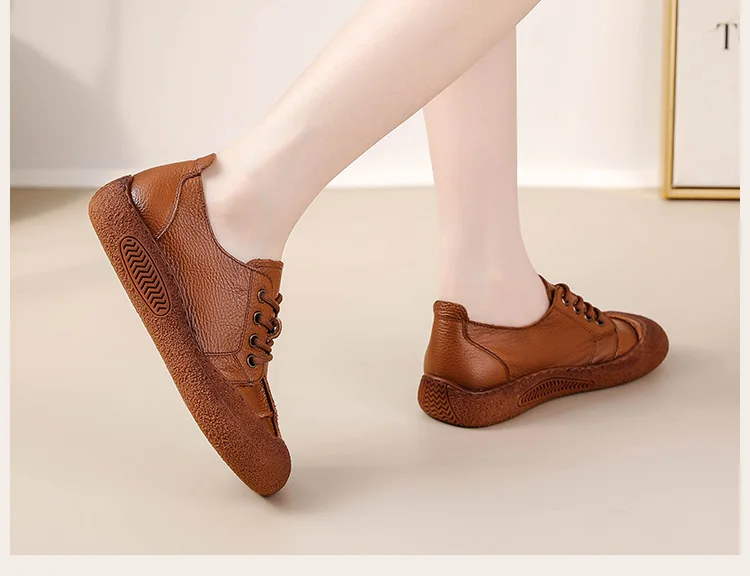 Das Obermaterial aus echtem Leder ist weich, atmungsaktiv und langlebig. Die Microfiber-Innensohle passt sich dem Fuß an und bietet ganztägige Polsterung. Die PU-Fütterung sorgt für angenehme Weichheit, während die flexible Gummisohle sicheren Halt auf allen Oberflächen bietet. Die Schuhe sind wasserdicht, wodurch sie auch bei leichten Nässebedingungen tragbar bleiben.