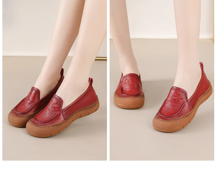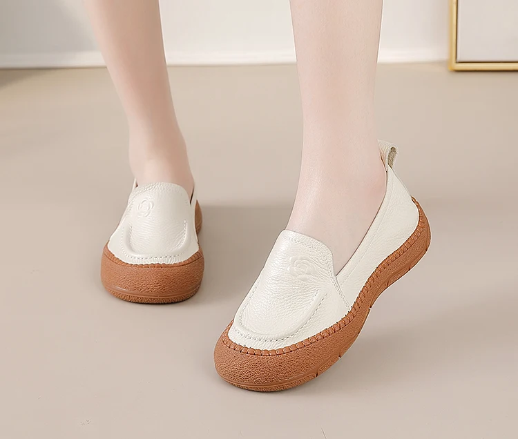 Die feerldi Damen Flats WB-308K 281K verbinden hochwertiges Rindsleder mit klassischem Retro-Design. Diese eleganten Slip-On Loafers sind ideal für Frauen, die komfortable, weiche und stilvolle Schuhe für Alltag, Büro oder Freizeit suchen. Die runde Zehenform sorgt für femininen Look, während das elastische Obermaterial für sicheren Halt sorgt.