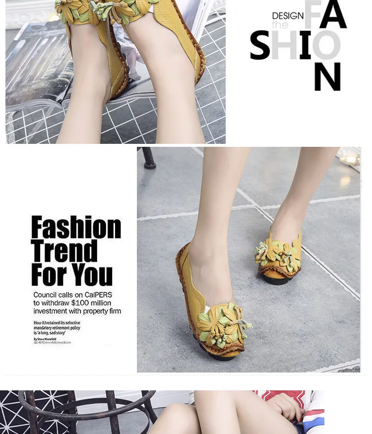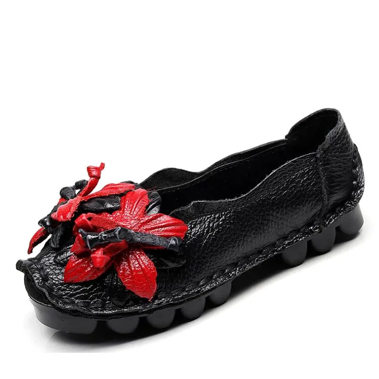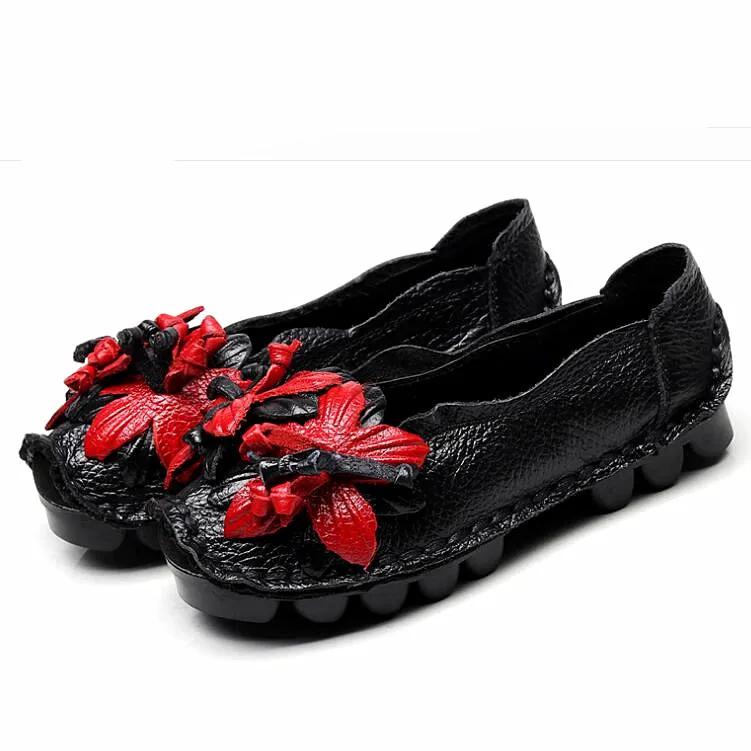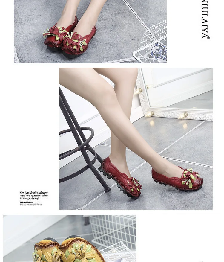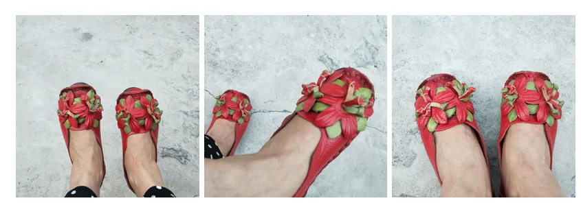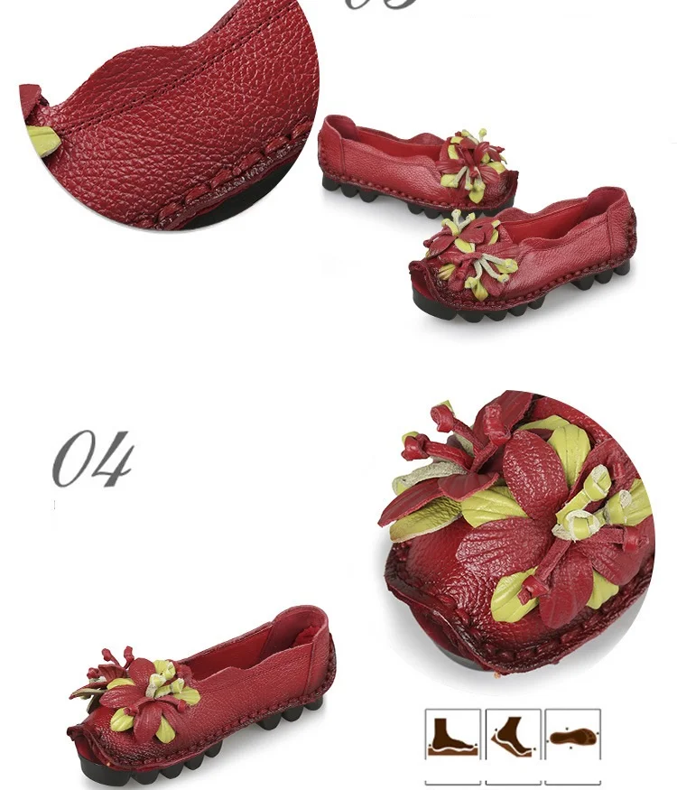 Das Obermaterial aus Genuine Leather ist weich, strapazierfähig und atmungsaktiv. Die PU-Innensohle passt sich dem Fuß an und bietet ganztägigen Komfort, während die rutschfeste Gummisohle sicheren Halt auf allen Oberflächen garantiert. Das minimalistische Retro-Design mit floralem Muster verleiht den Flats eine elegante und feminine Note.