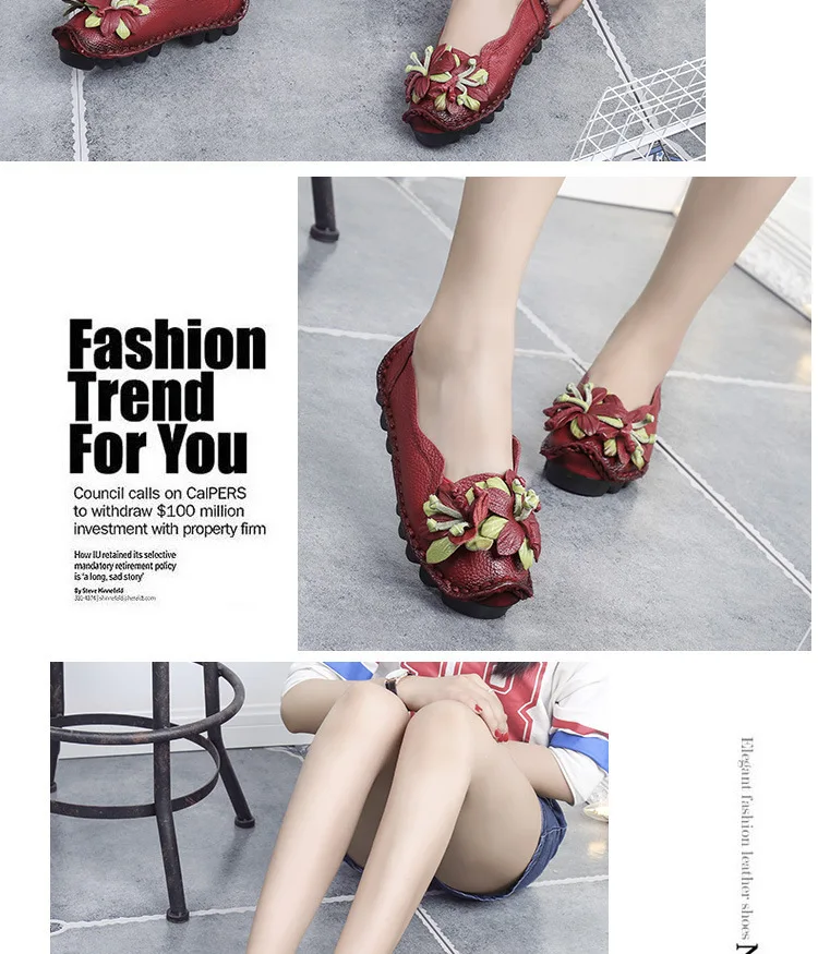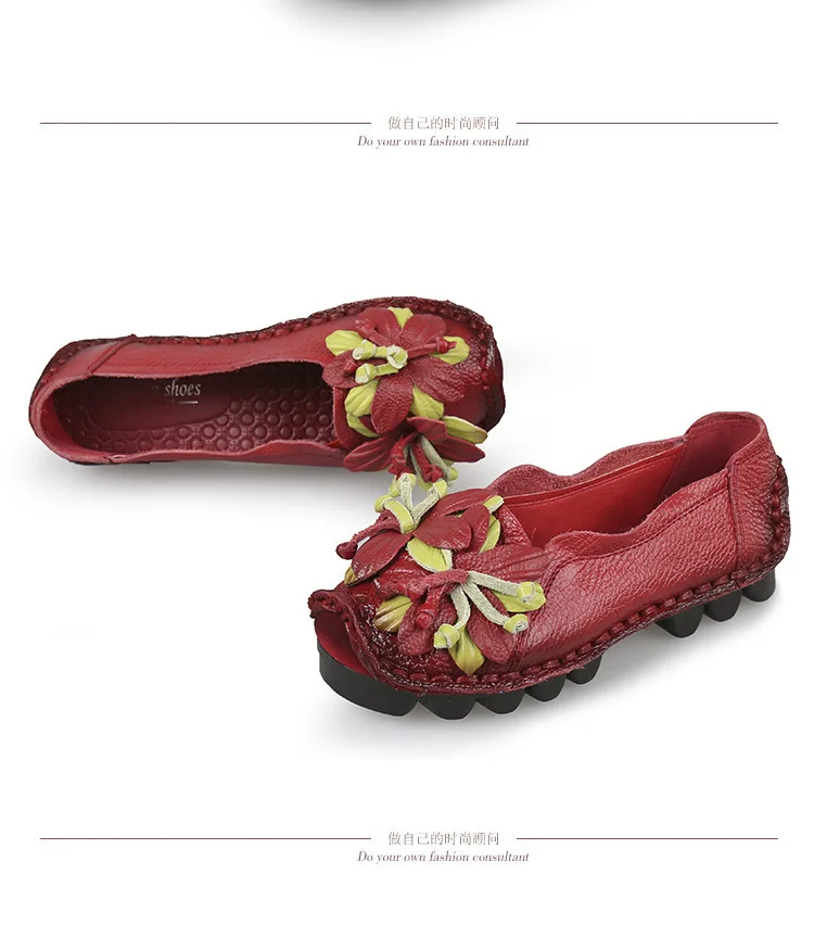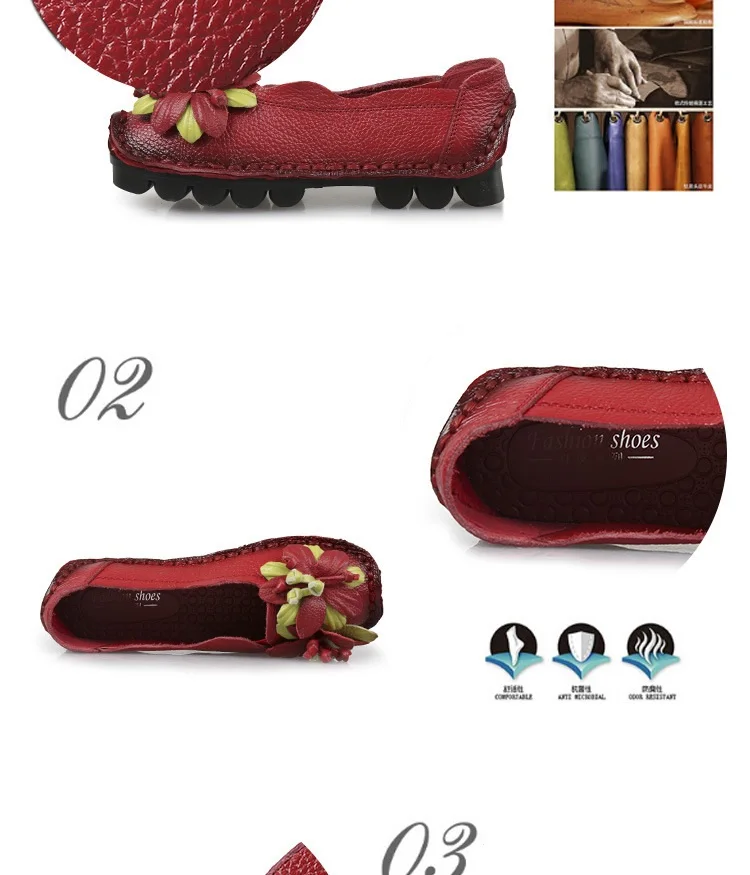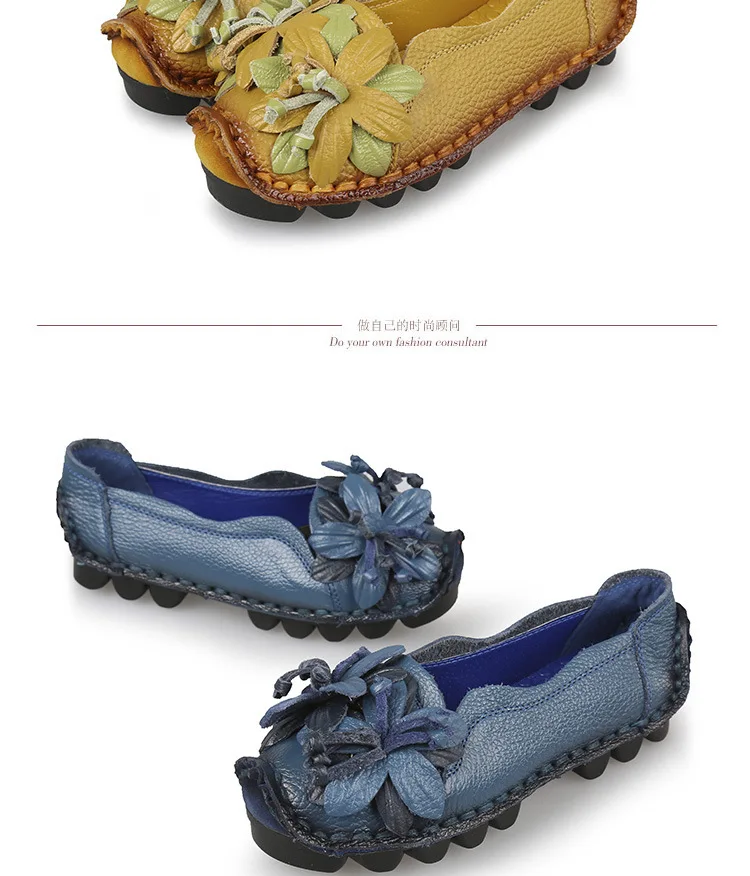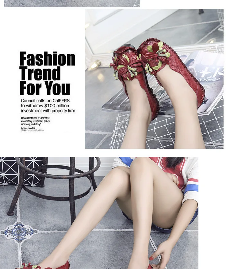 Das Obermaterial aus Genuine Leather ist weich, strapazierfähig und atmungsaktiv. Die PU-Innensohle passt sich dem Fuß an und bietet ganztägigen Komfort, während die rutschfeste Gummisohle sicheren Halt auf allen Oberflächen garantiert. Das minimalistische Retro-Design mit floralem Muster verleiht den Flats eine elegante und feminine Note.