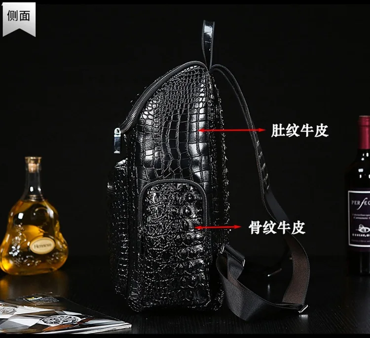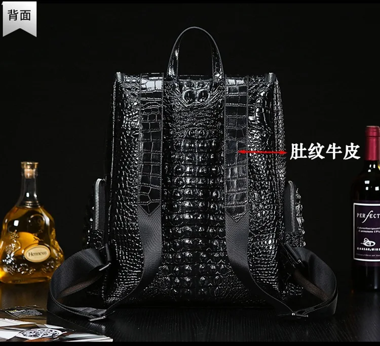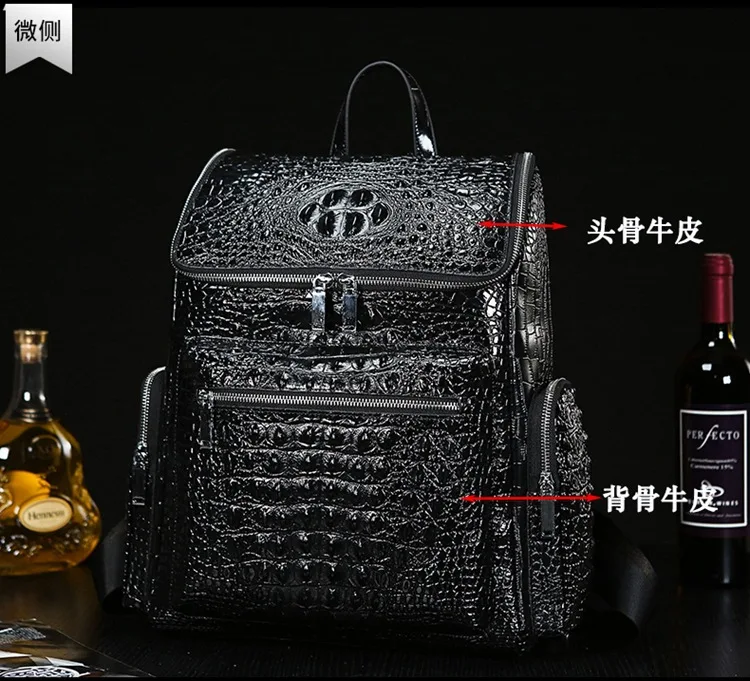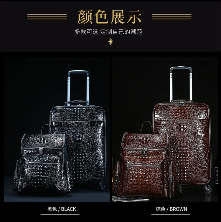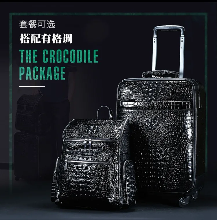 FirstMeet Unisex Reisegepäck aus echtem Rindsleder – Kroko-Prägung Trolley, Handtasche & Rucksack Set