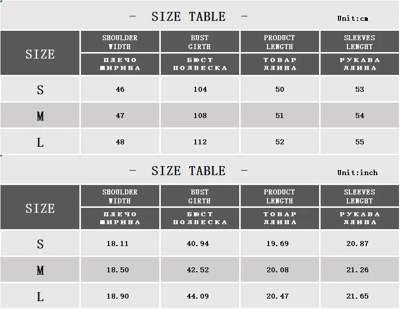 Die Jacke ist in den Größen S, M und L erhältlich und bietet eine angenehme, feminine Passform. Bitte orientieren Sie sich an den angegebenen Maßen, um Ihre passende Größe zu wählen.