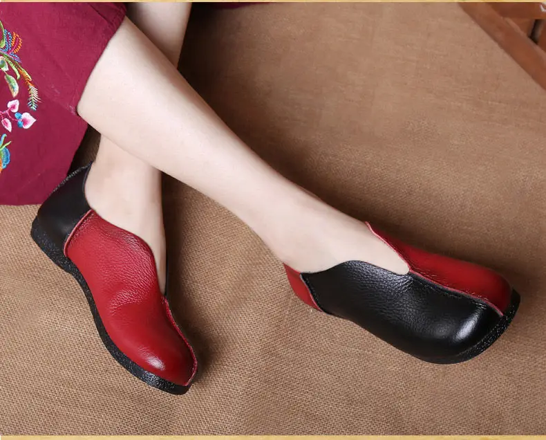 Gefertigt aus Genuine Cow Leather, sind diese Damen-Loafers besonders weich, atmungsaktiv und robust. Das hochwertige Leder passt sich sanft dem Fuß an und entwickelt über die Zeit eine schöne, natürliche Patina. Die runde Zehenform und die sorgfältige Verarbeitung sorgen für eine stilvolle Optik und hohen Tragekomfort.