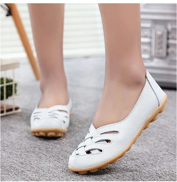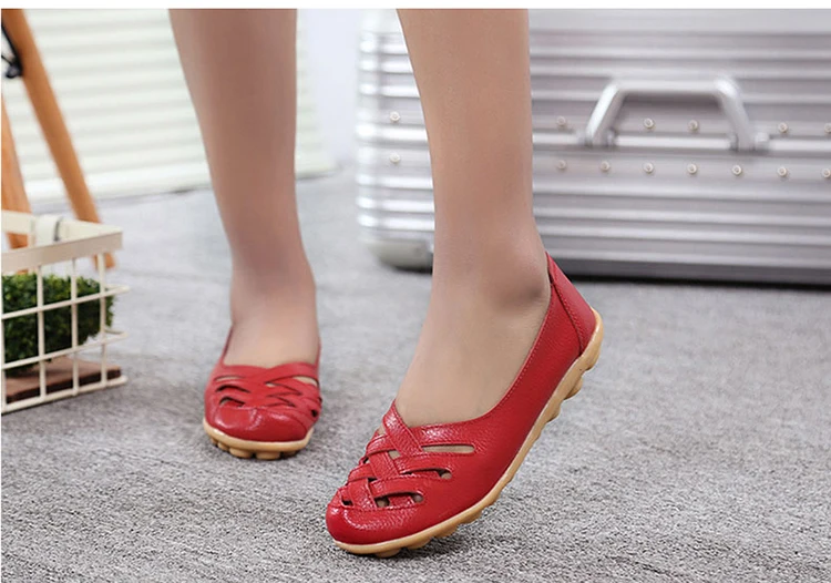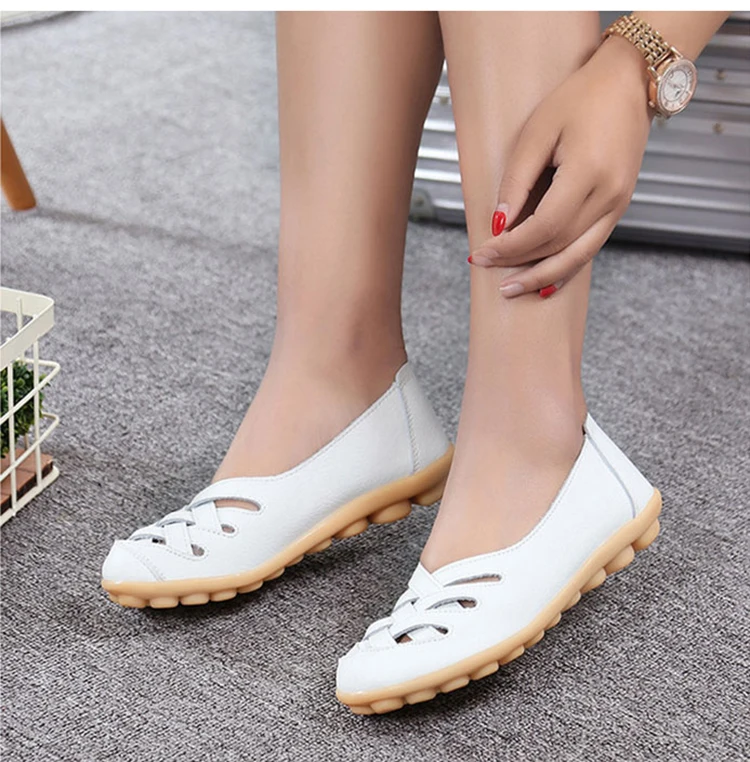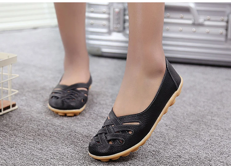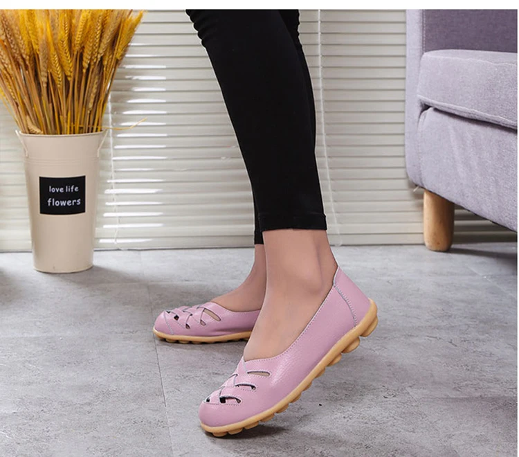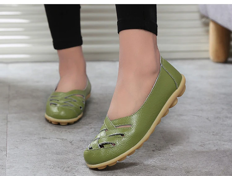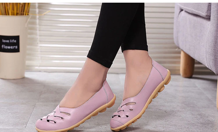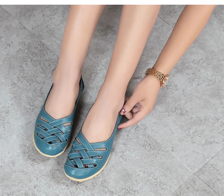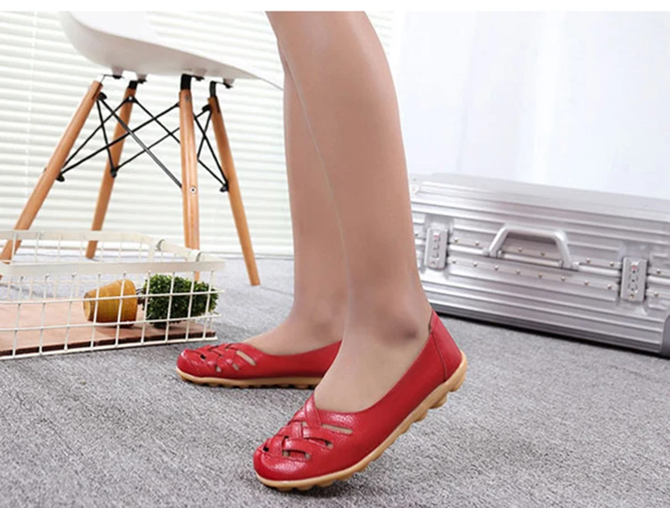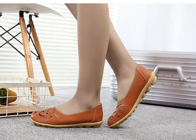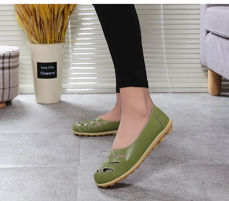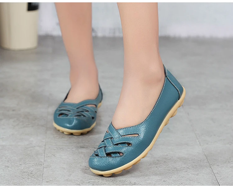 Das Obermaterial aus echtem Leder sorgt für Atmungsaktivität, Langlebigkeit und eine edle Optik. Die PU-Innensohle passt sich dem Fuß an und bietet ganztägigen Komfort, während die flexible Gummisohle sicheren Halt auf allen Oberflächen gewährleistet. Diese Flats sind nicht wasserdicht, punkten jedoch mit leichter Pflege und hoher Strapazierfähigkeit.