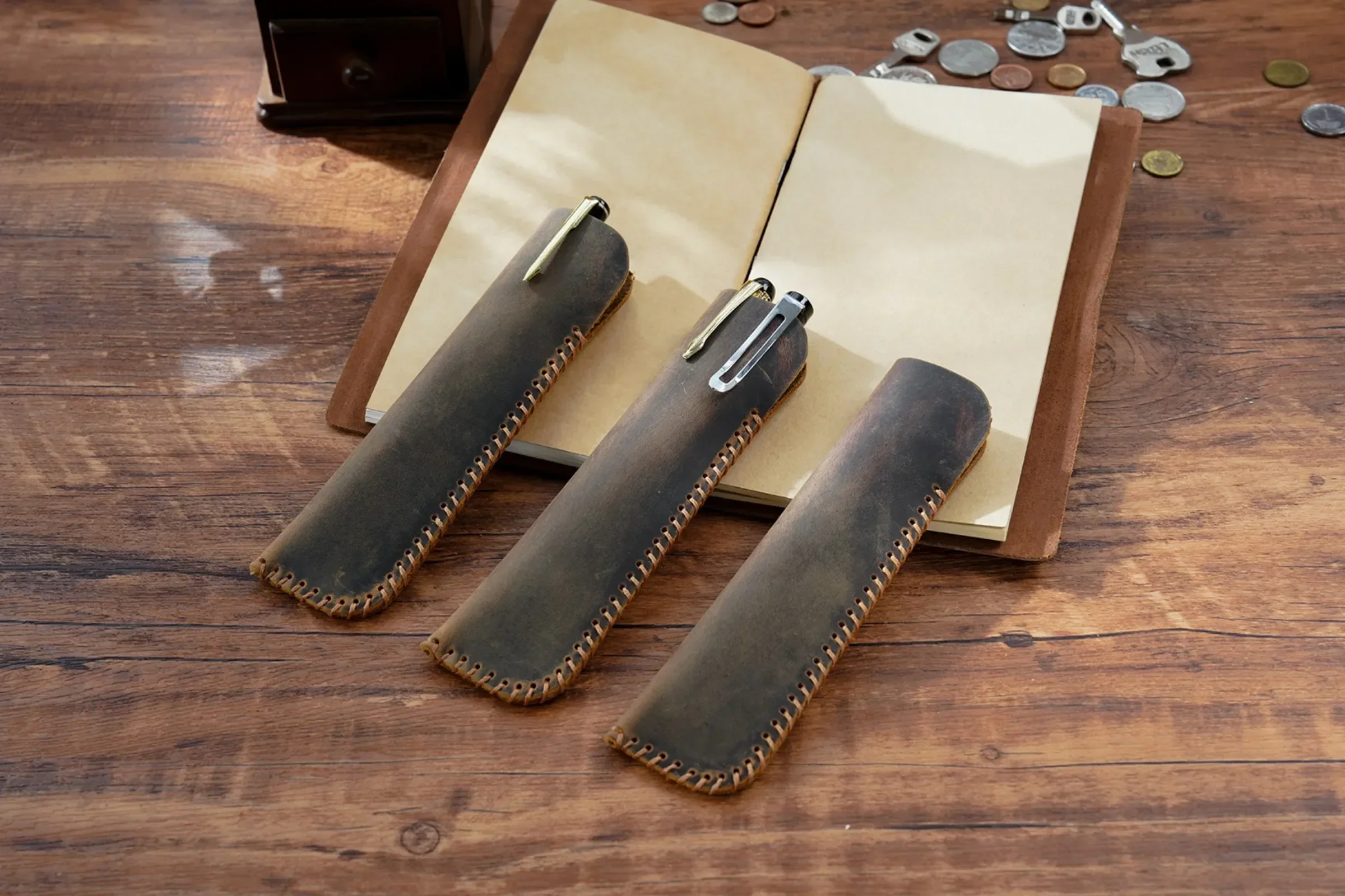 Dieses handgefertigte Vintage Stifteetui aus echtem Leder wurde für alle entwickelt, die ihre hochwertigen Schreibgeräte sicher und stilvoll aufbewahren möchten. Die elegante Leder Pen Hülle eignet sich ideal für Füllfederhalter, Kugelschreiber und andere edle Stifte und verbindet zeitloses Design mit zuverlässiger Funktionalität – perfekt für Schule, Büro oder unterwegs.