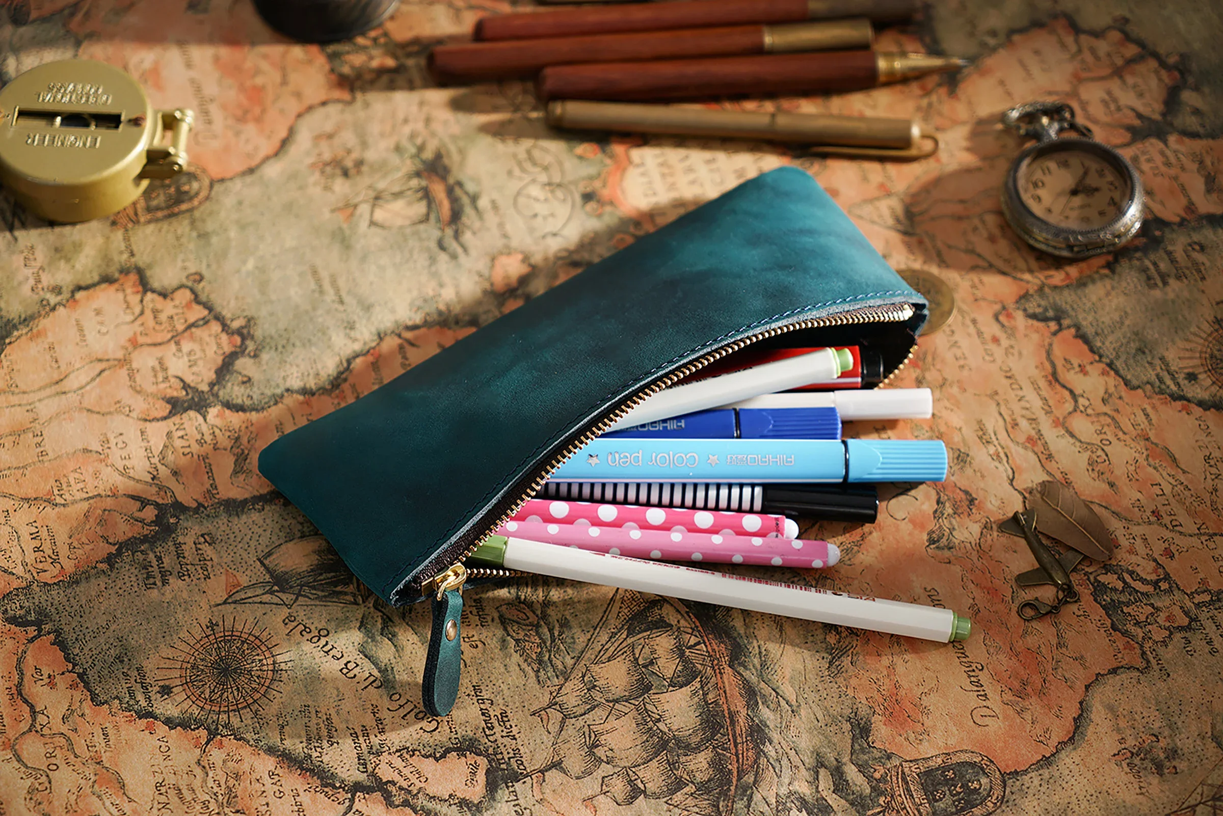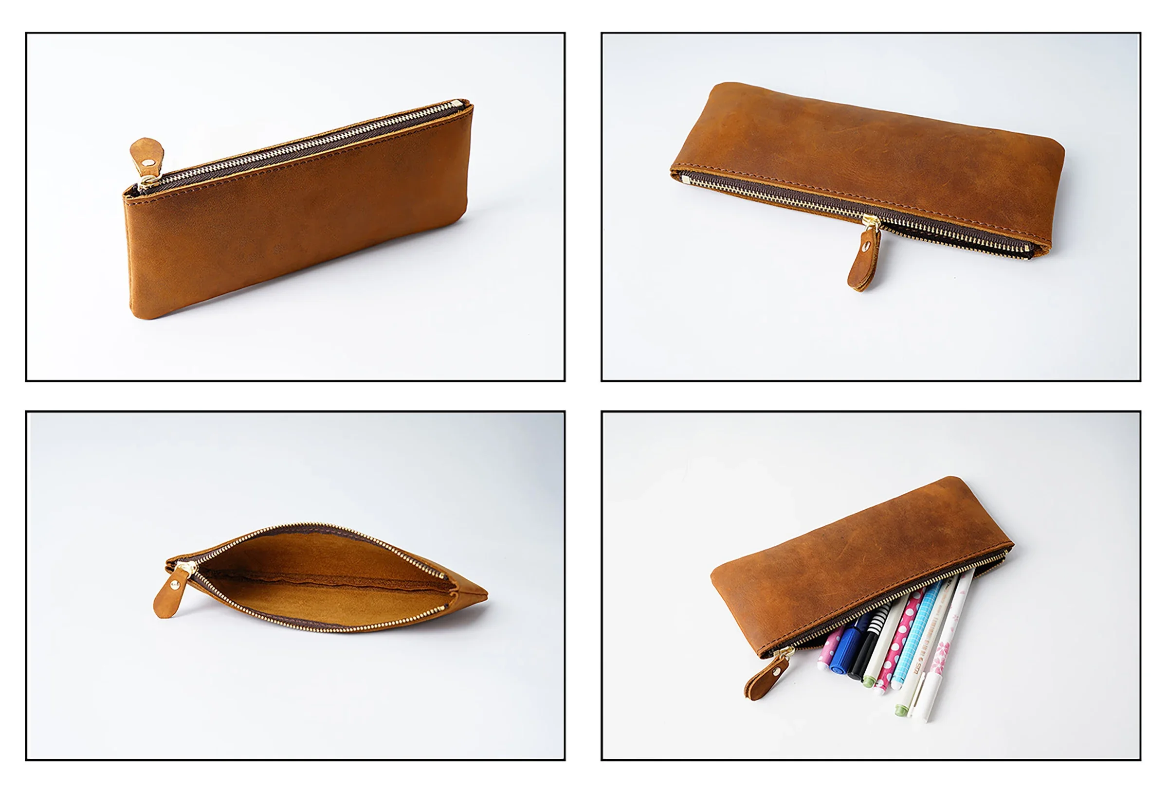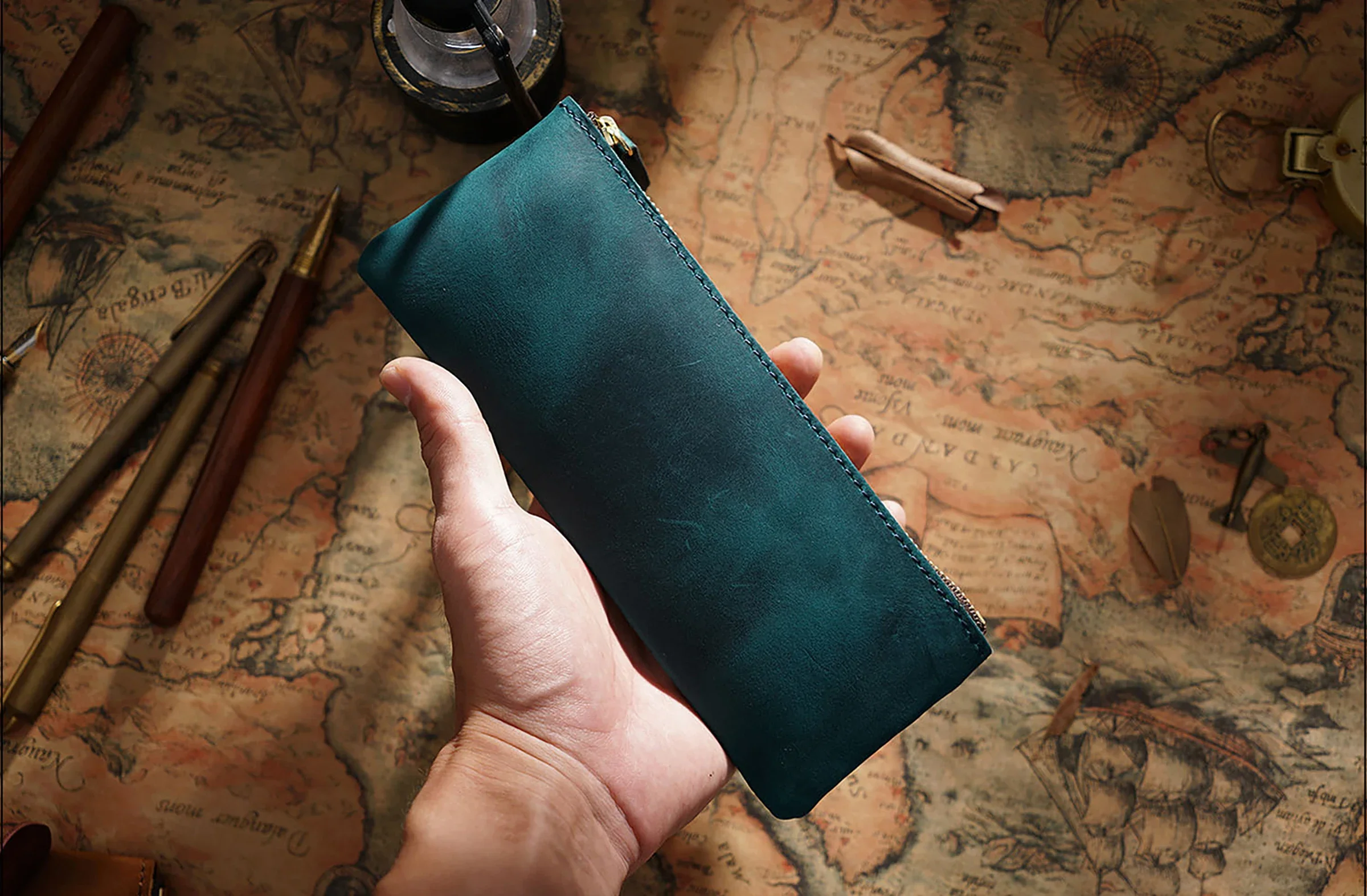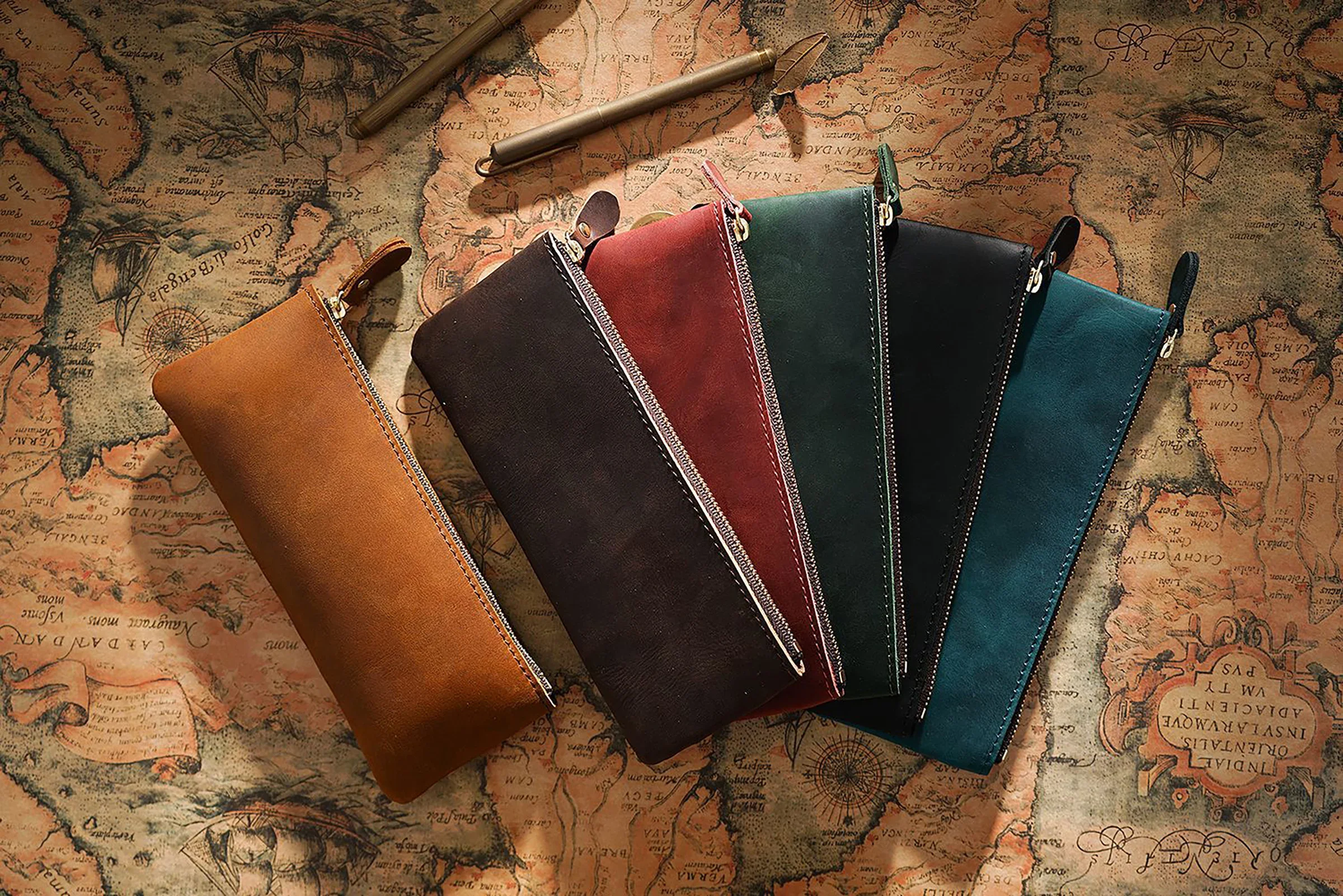 Dieses handgefertigte Leder Stifteetui mit Reißverschluss verbindet zeitloses Vintage-Design mit praktischer Funktionalität. Als hochwertiger Stationery Organizer eignet es sich ideal für Büro, Schule und Reisen. Ob Füllfederhalter, Kugelschreiber oder weiteres Schreibzubehör – alles ist sicher, ordentlich und stilvoll verstaut.