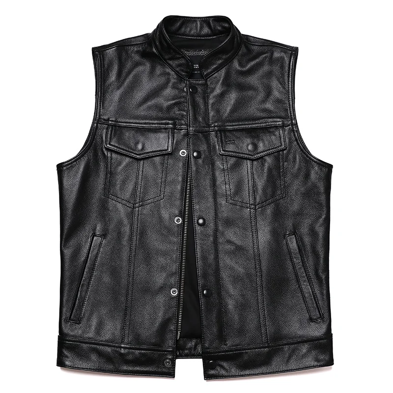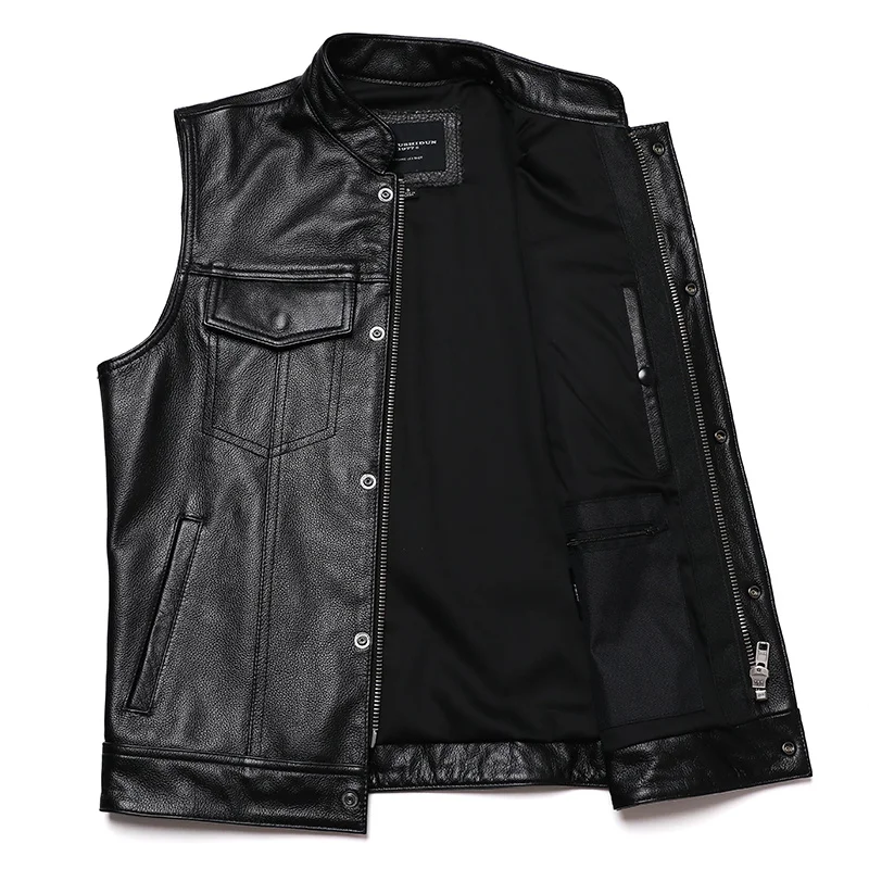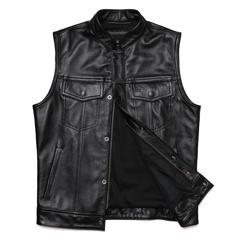 Herren Biker Lederweste aus echtem Rindsleder – Slim Fit Motorrad Weste im Sons of Anarchy Stil, Ärmellose Zipper-Weste für Frühjahr & Herbst