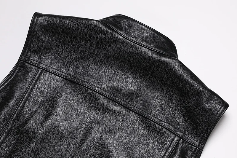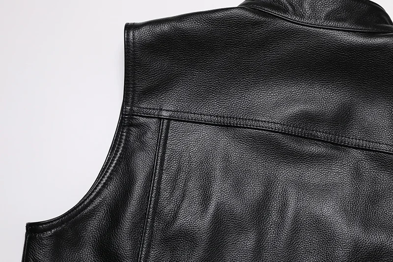 Der moderne Slim-Fit-Schnitt sorgt für eine körpernahe Passform und eine markante Silhouette. Der durchgehende Reißverschluss ermöglicht ein schnelles An- und Ausziehen, während der Stehkragen dem Design eine klare, maskuline Linie verleiht. Die schlichte, einfarbige Optik macht diese Lederweste vielseitig kombinierbar – von klassisch bis rebellisch.