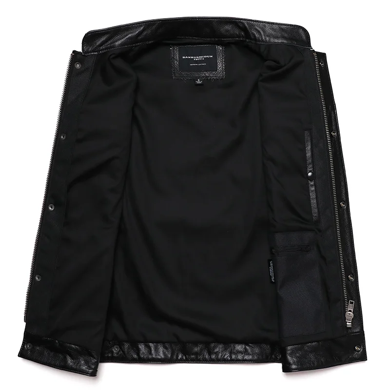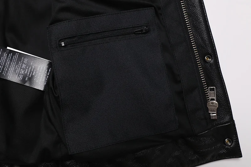 Gefertigt aus hochwertigem Cowhide-Leder überzeugt diese Biker Weste durch ihre natürliche Struktur und hohe Strapazierfähigkeit. Echtes Leder passt sich mit der Zeit Ihrem Körper an und entwickelt eine individuelle Patina – jedes Stück wird so zu einem Unikat. Das Material bietet zuverlässigen Schutz vor Wind und verleiht der Weste ihren kraftvollen, authentischen Look.