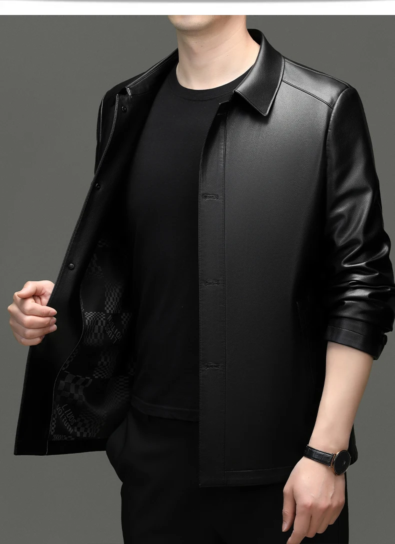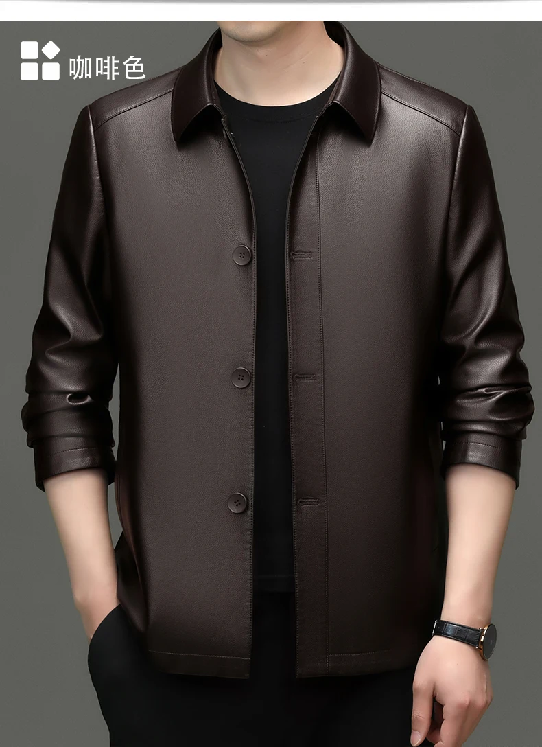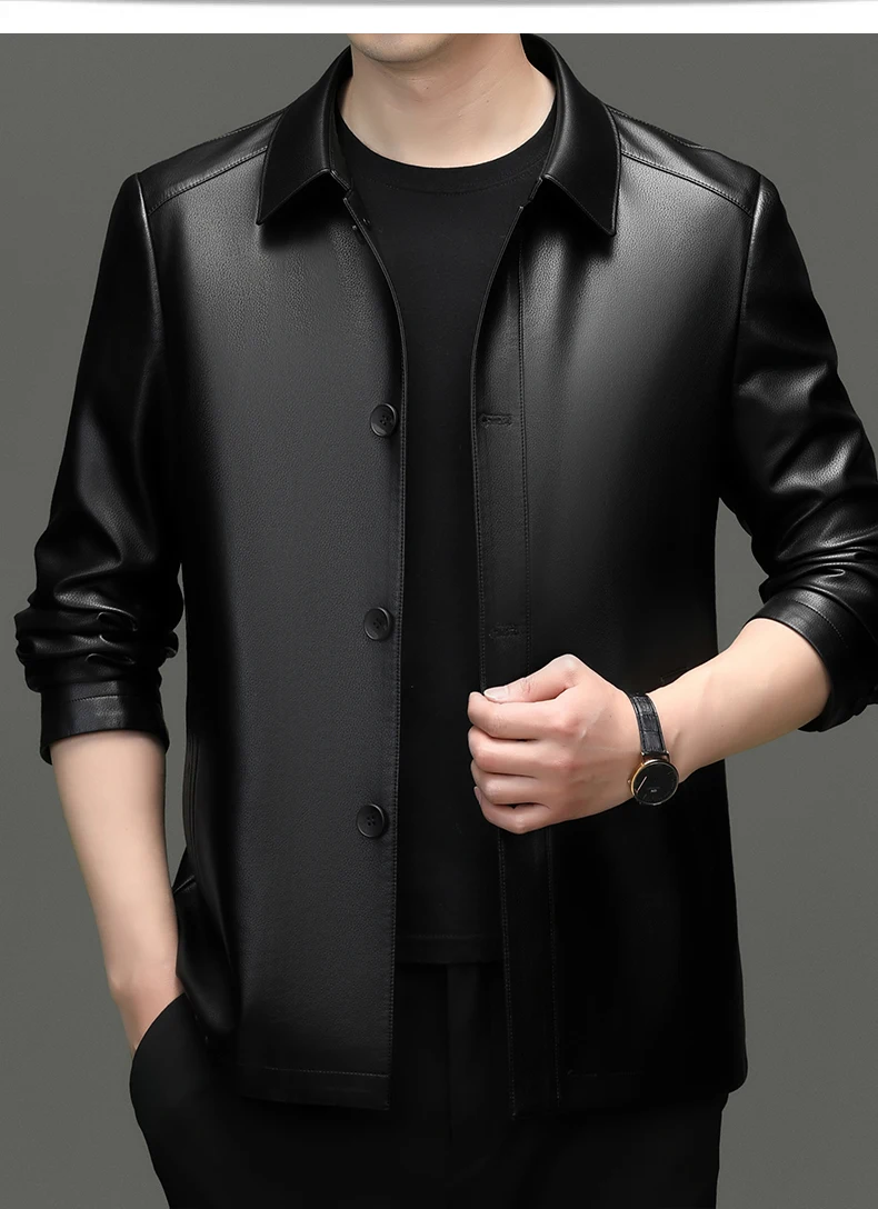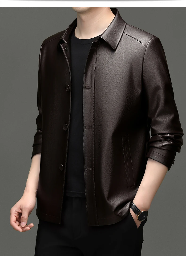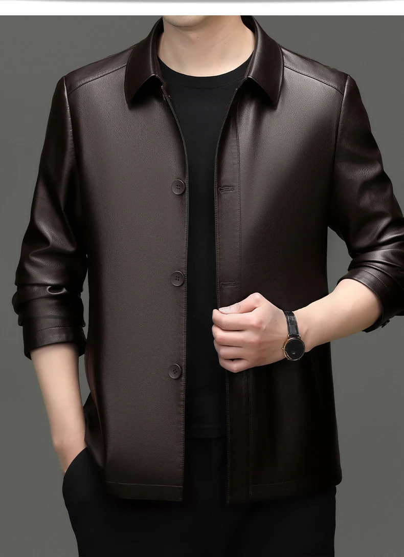 Herren Echtledermantel aus Schafsleder – Eleganter Business- & Casual Ledercoat mit Knopfleiste für Frühling & Herbst