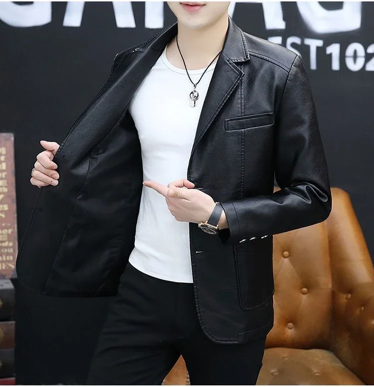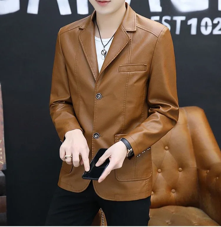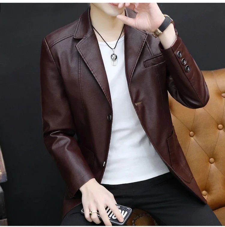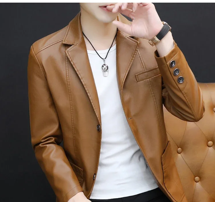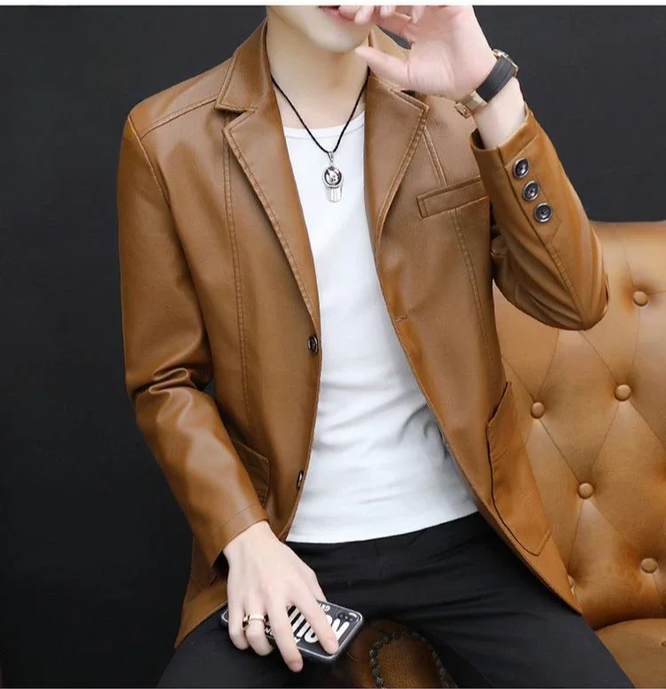 Moderner Herren Lederblazer im Korean Style