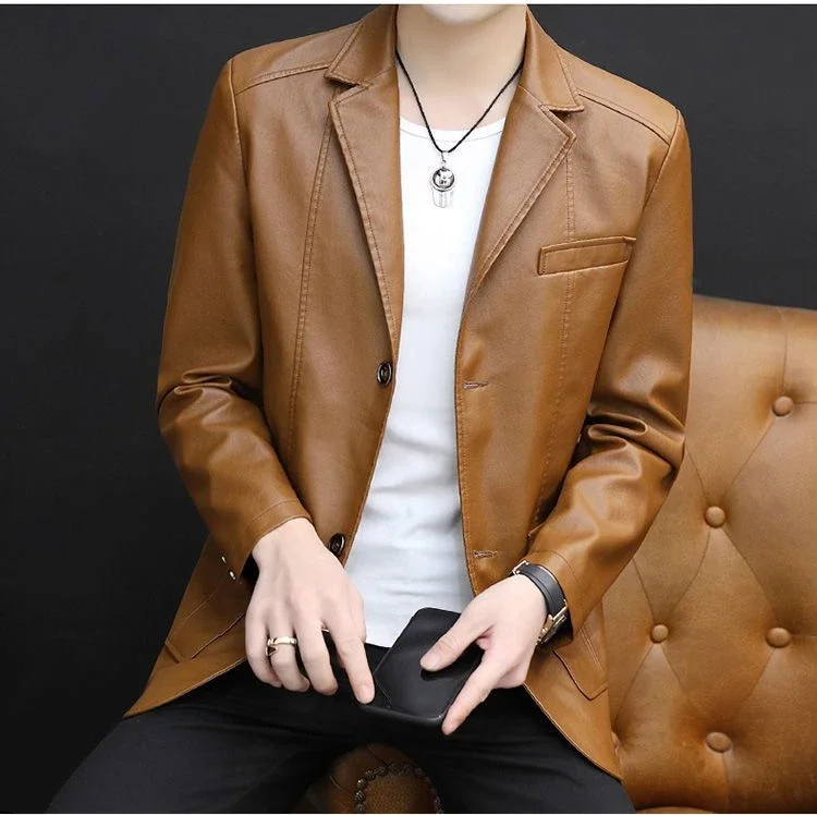 Herren Lederblazer im Korean Style – Eleganter Frühlings- & Herbstblazer für modebewusste Gentlemen