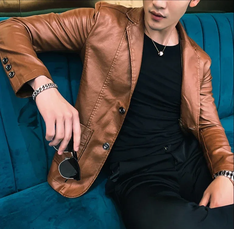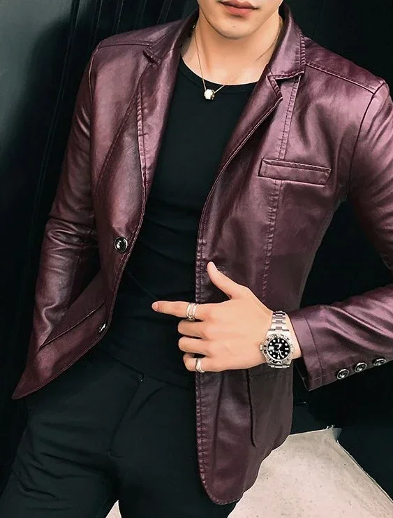 Moderner Korean Style Lederblazer für stilvolle Herren