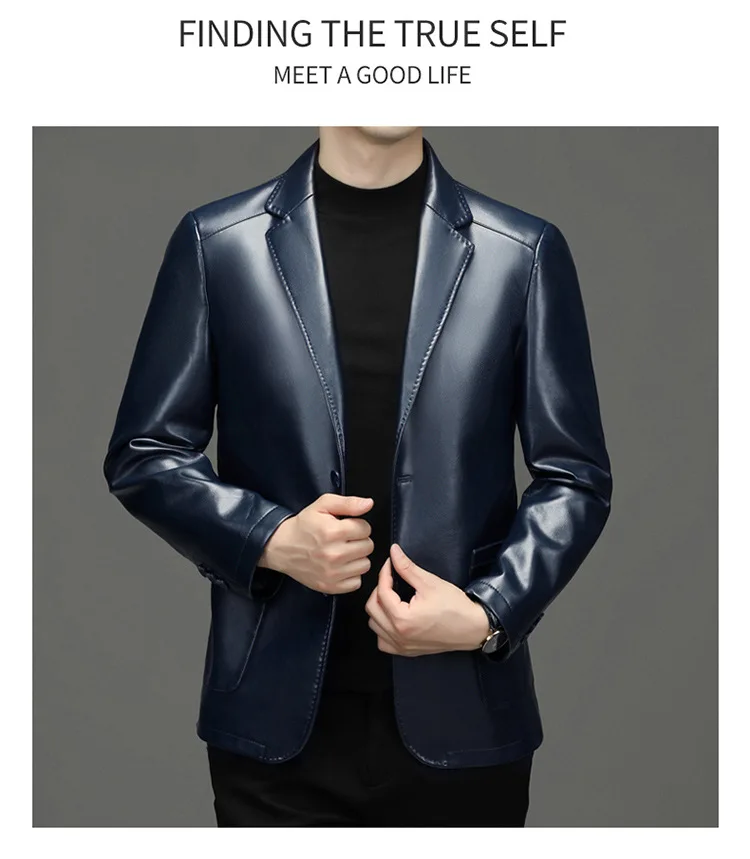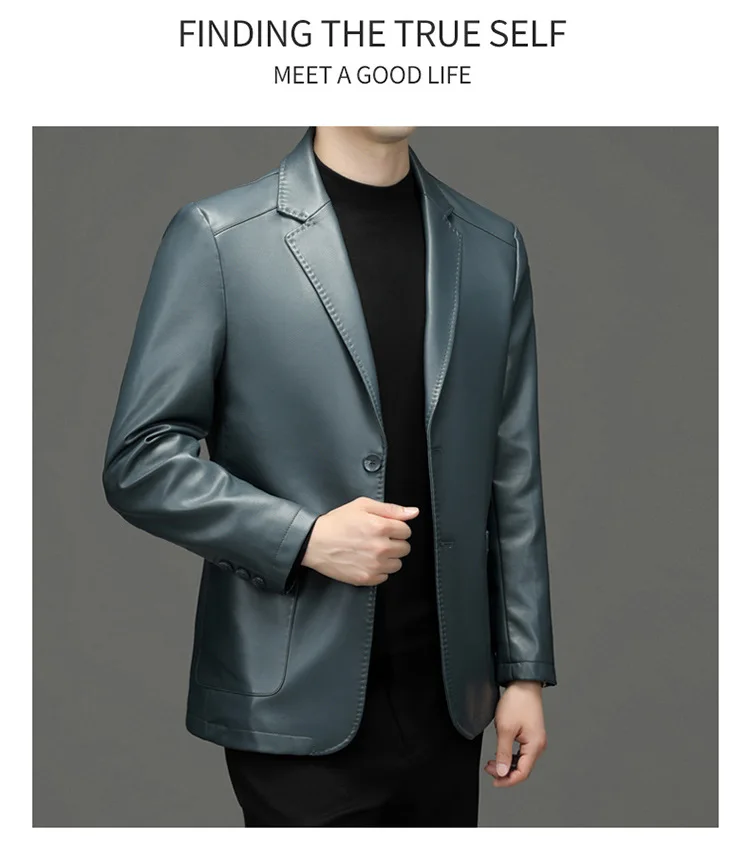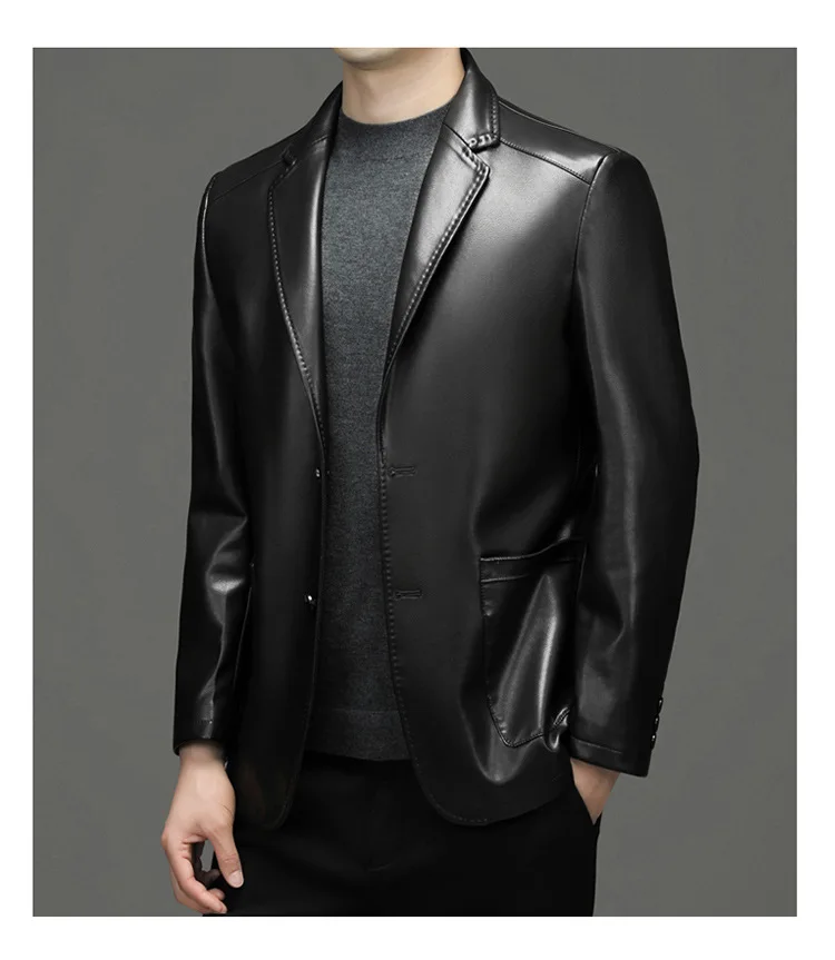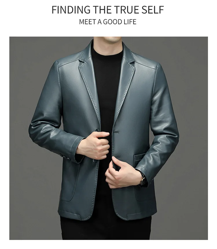 Herren Lederblazer Slim Fit – Eleganter Business-Casual Blazer in Lederoptik für Herbst & Winter 2025