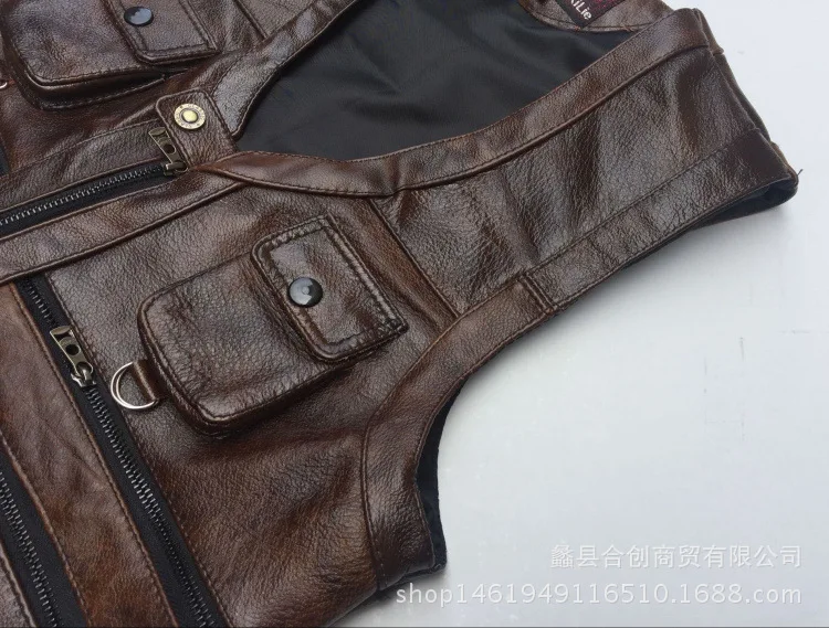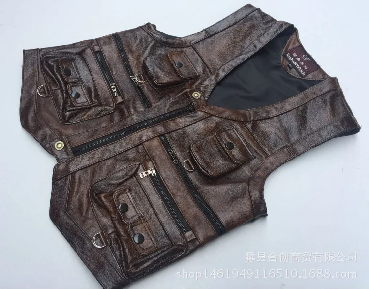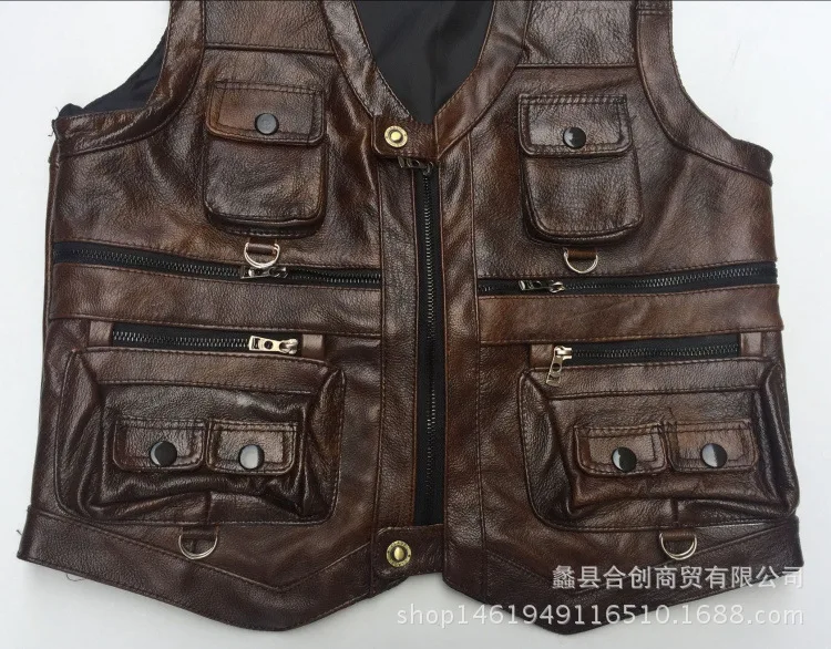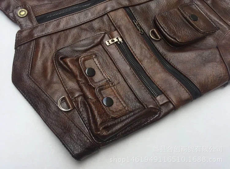 Herren Lederweste aus dickem Rindsleder – Hochwertige Cowhide Weste mit Stehkragen, Reißverschluss & vielen Taschen für Herbst & Winter