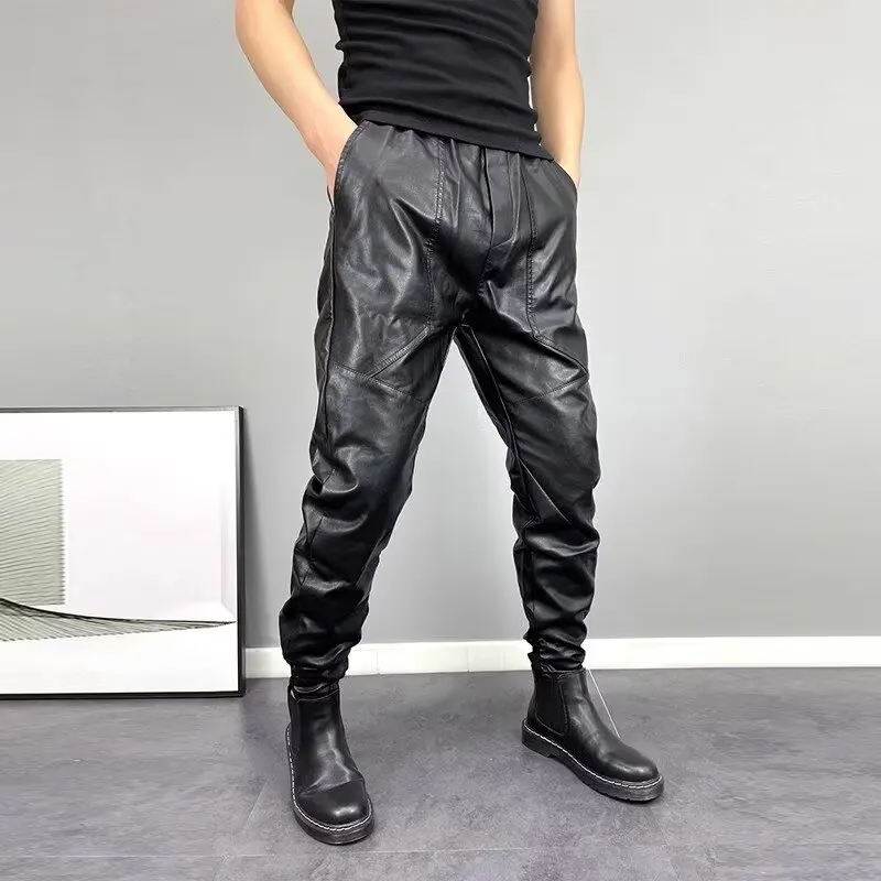 Diese Herren PU Leder Jogginghose vereint urbanen Look mit maximalem Komfort. Die moderne Lederoptik trifft auf einen entspannten Harem-Pants-Schnitt, wodurch eine stilvolle Silhouette entsteht, die gleichzeitig Bewegungsfreiheit bietet. Ideal für den Alltag, Freizeit oder entspannte Abende – diese Hose ist ein vielseitiger Begleiter für modebewusste Männer.