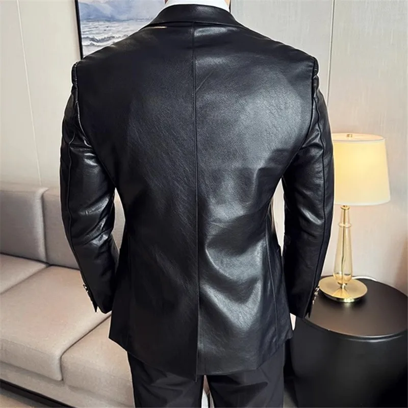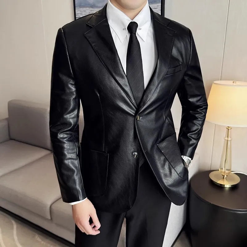 Herren PU Lederjacke Slim Fit – Eleganter Lederblazer mit Reverskragen für Business & Smart Casual