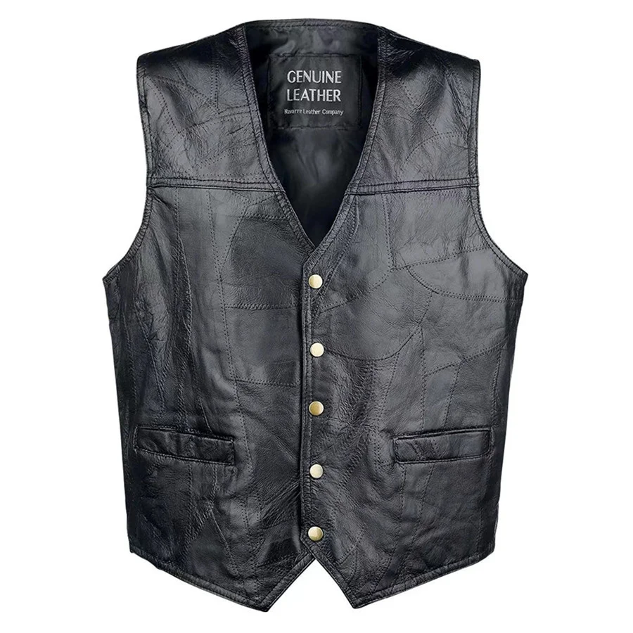 Herren Punk Motorrad Lederweste – Ärmellose Biker Weste mit V-Ausschnitt, Knopfleiste & Streetwear Look für Herbst & Winter