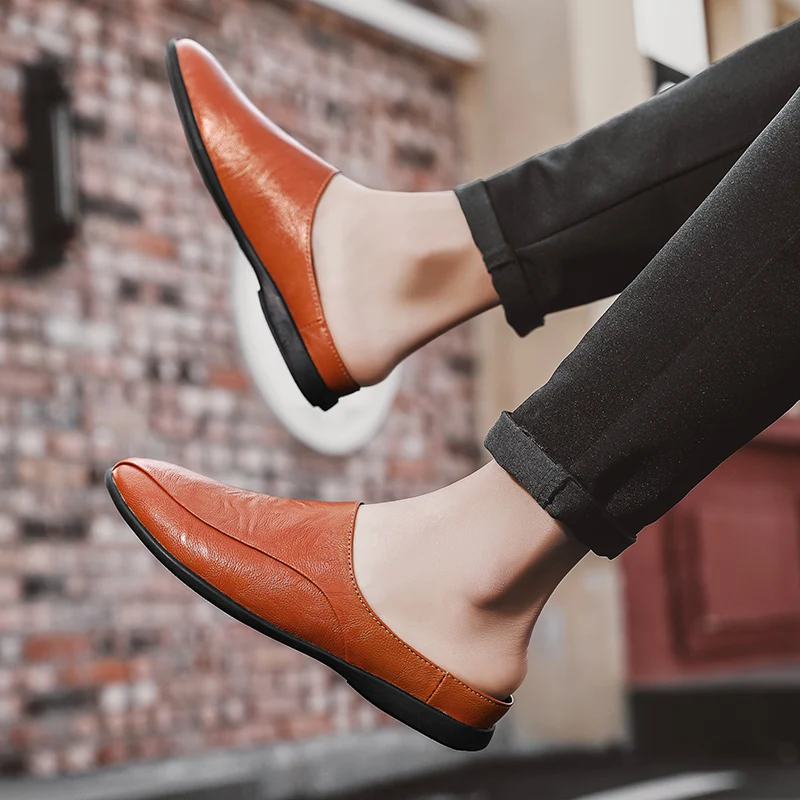 Herren Sommer Loafer aus echtem Leder – Atmungsaktive Half-Slipper Slip-On Driving Shoes, Bequeme Casual Schuhe für Alltag & Freizeit