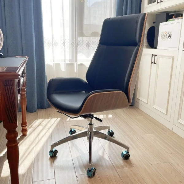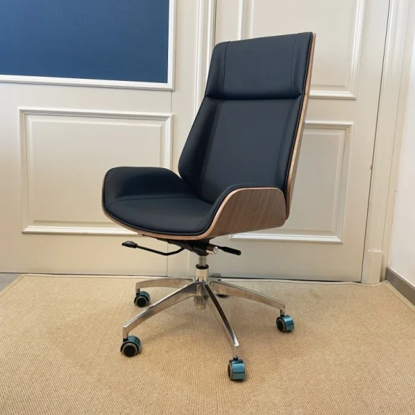 Highback Leder Bürostuhl mit Plywood-Rahmen – Ergonomischer Executive Drehstuhl mit weicher Lederpolsterung & Rollen für langes Sitzen